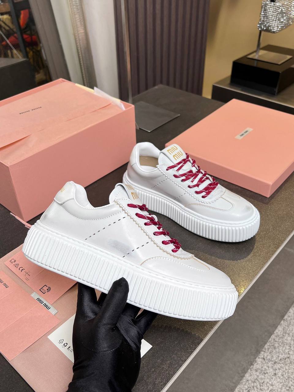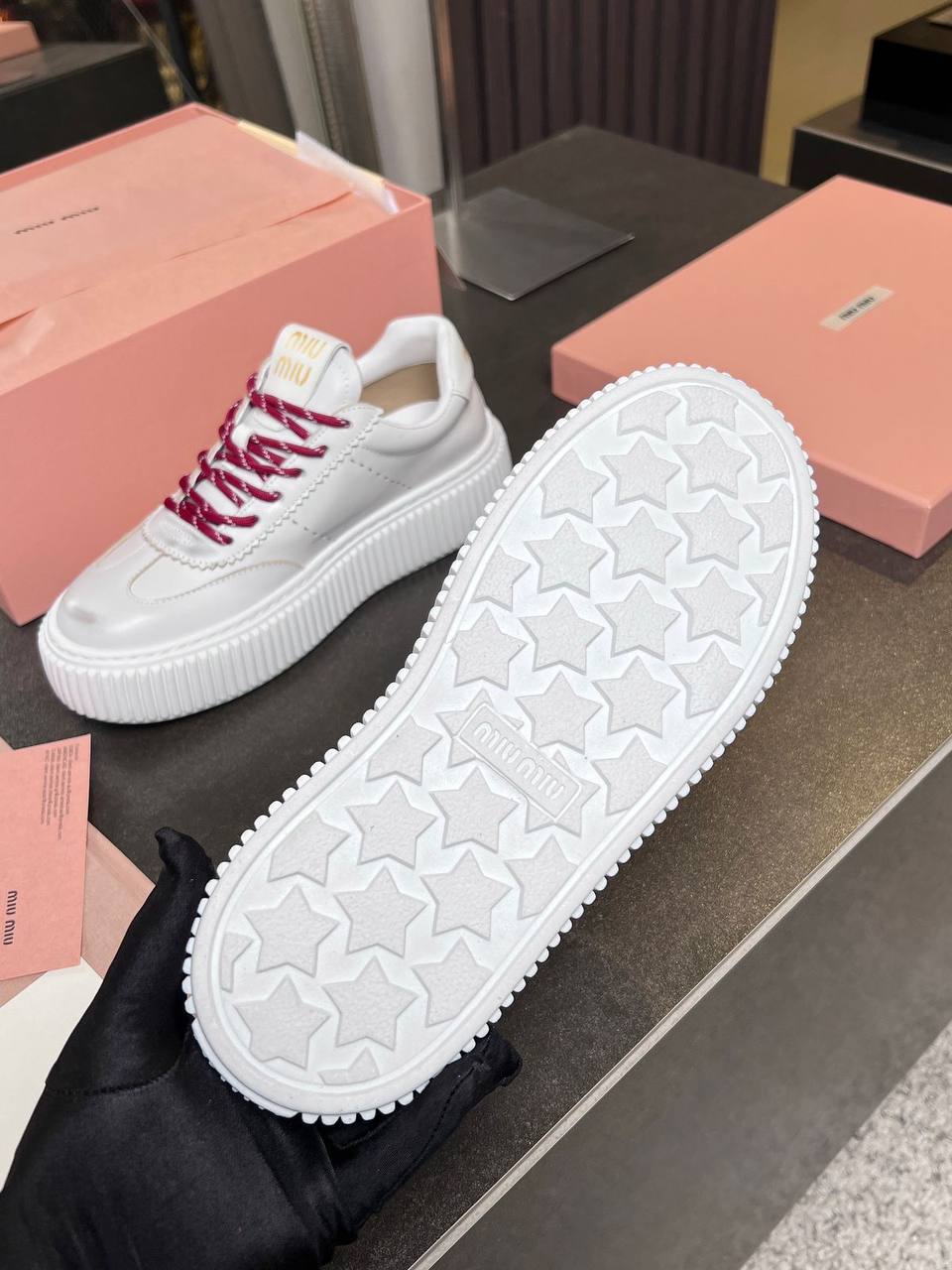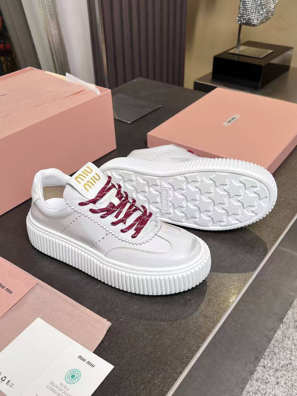 Женские кожаные кроссовки MIU MIU Premium