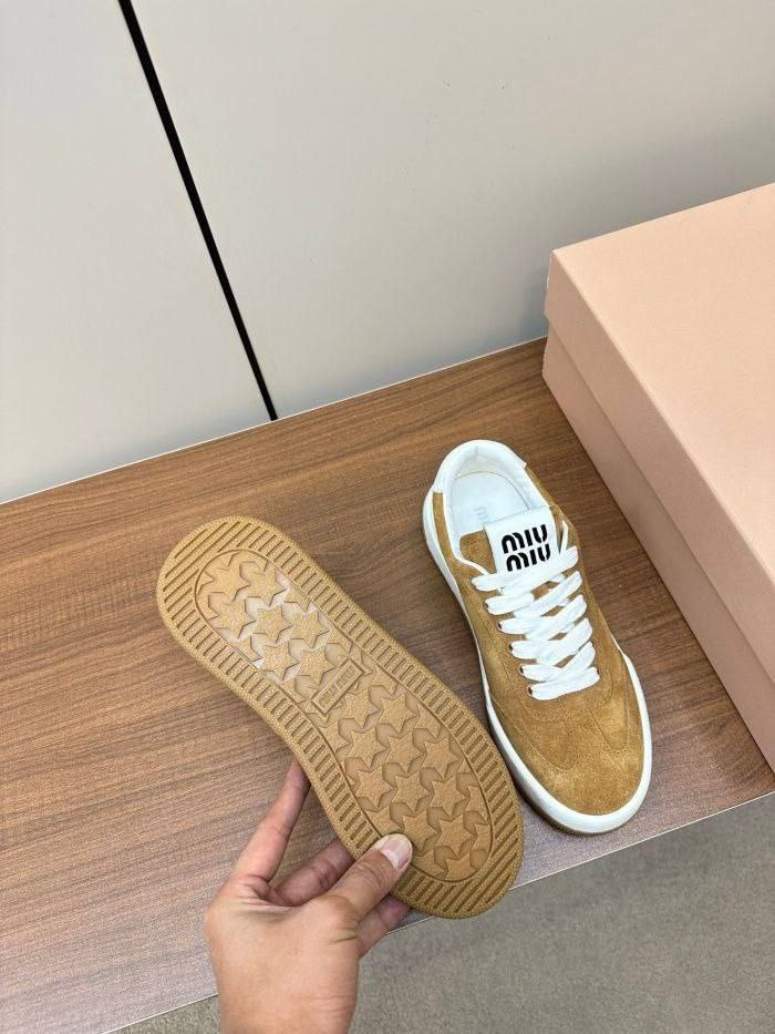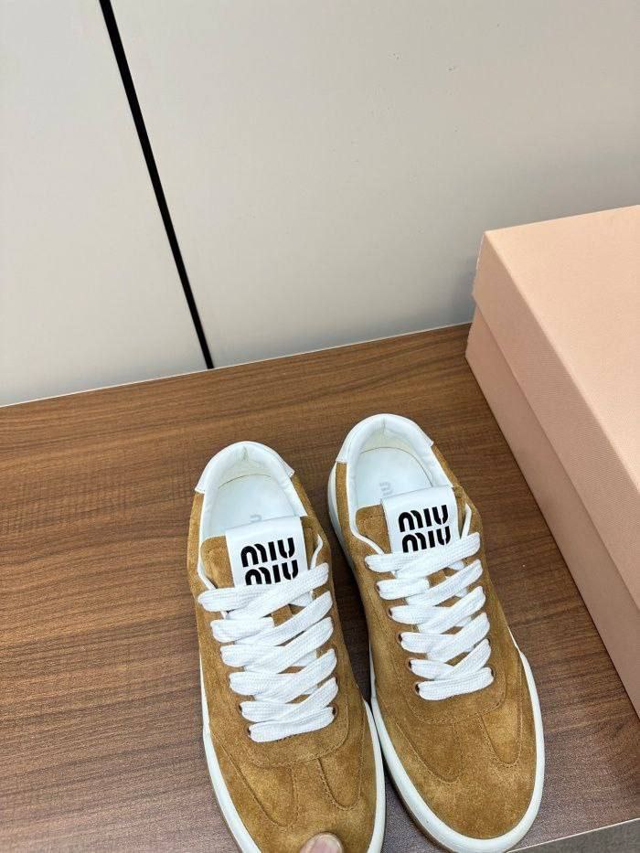Женские кожаные кроссовки MIU MIU Premium - Chestnut