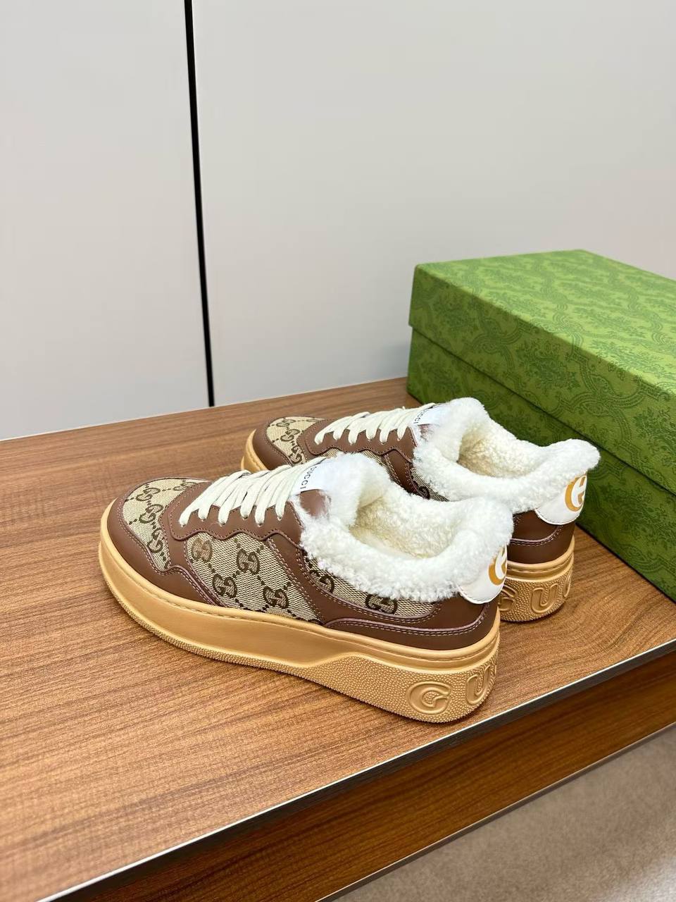 Женские кожаные кроссовки с мехом Gucci GG Premium
