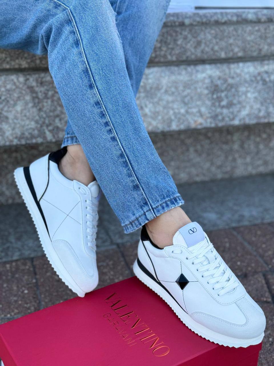 Женские кожаные кроссовки Valentino - White / Black