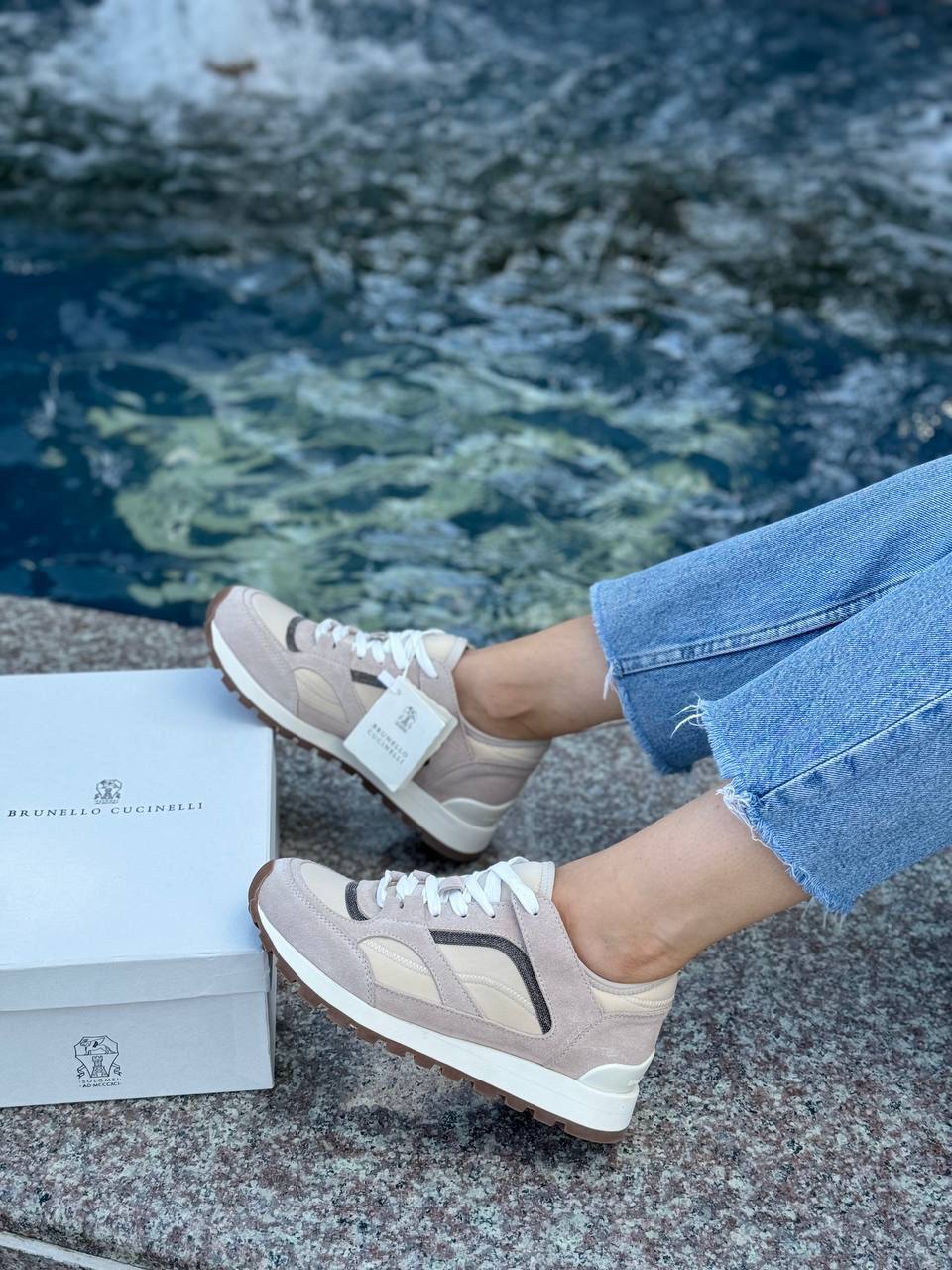 Женские замшевые кроссовки Brunello Cucinelli - Beige