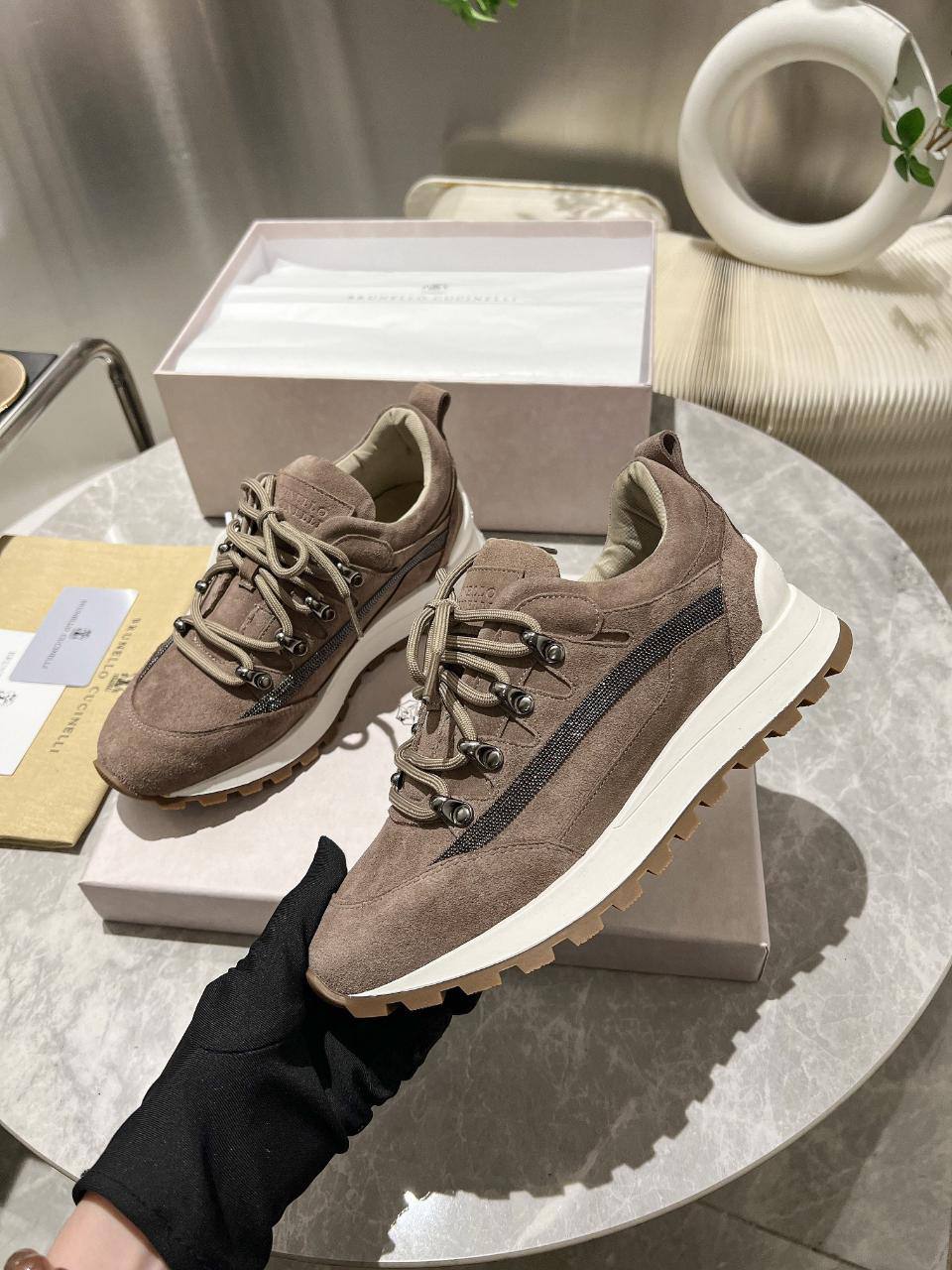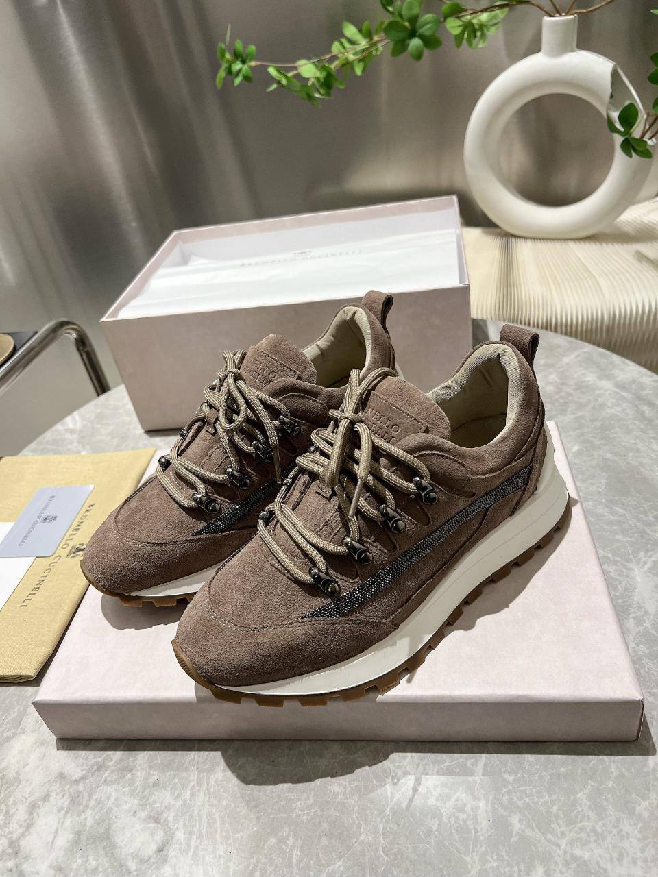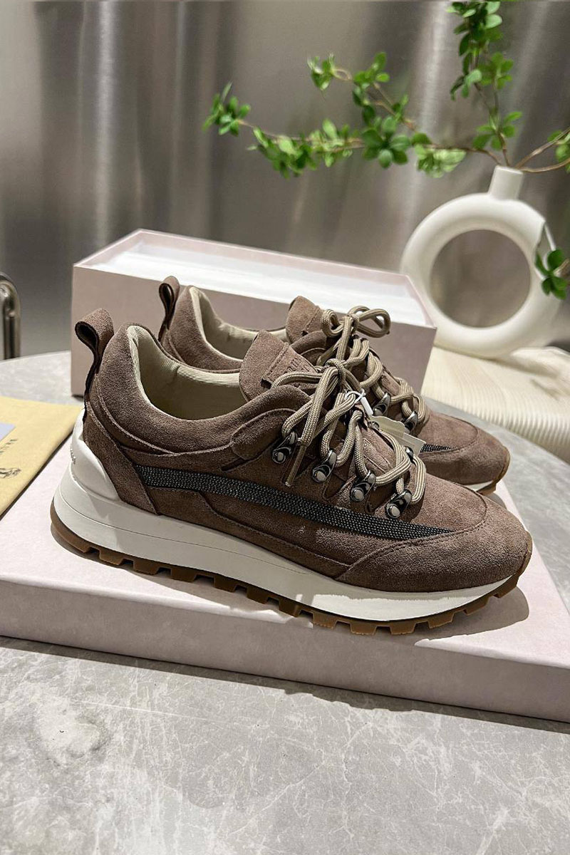 Женские замшевые кроссовки Brunello Cucinelli Monili Premium - Brown