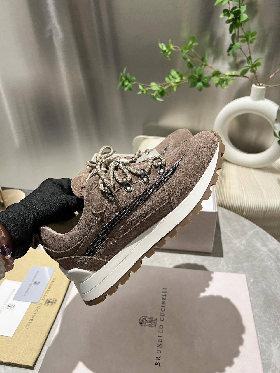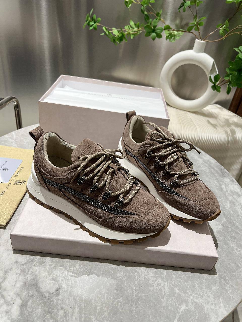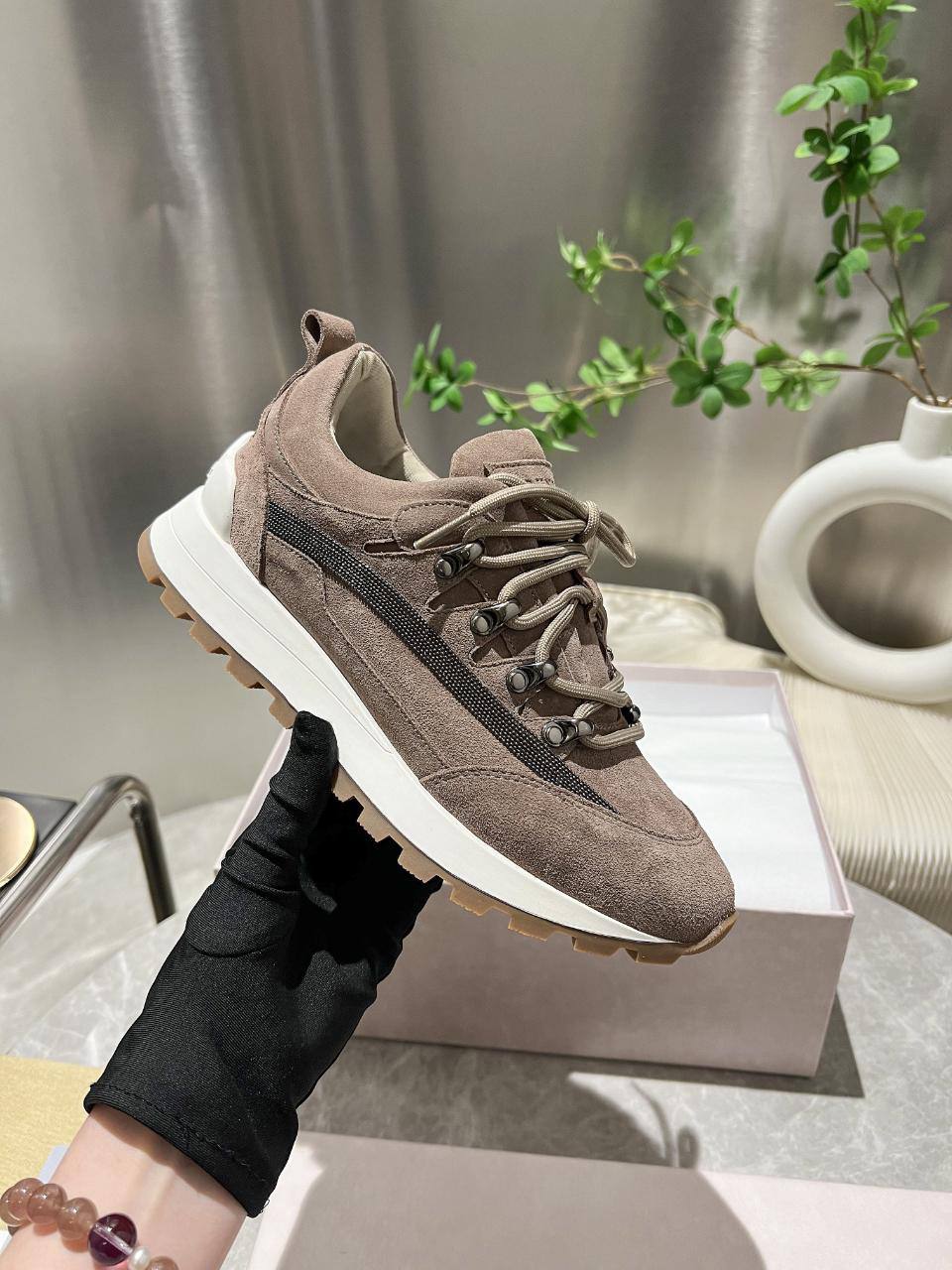 Женские замшевые кроссовки Brunello Cucinelli Monili Premium - Brown