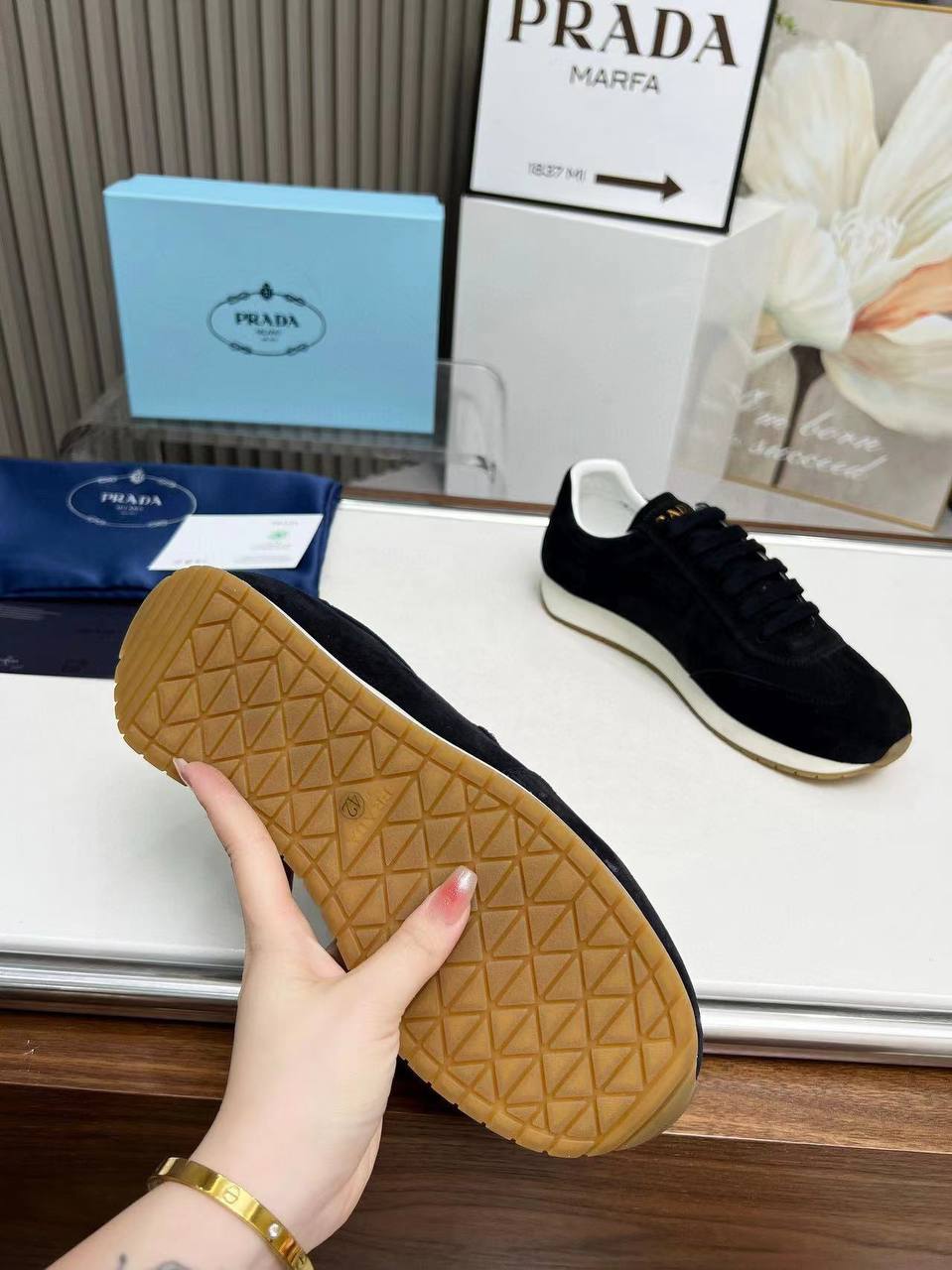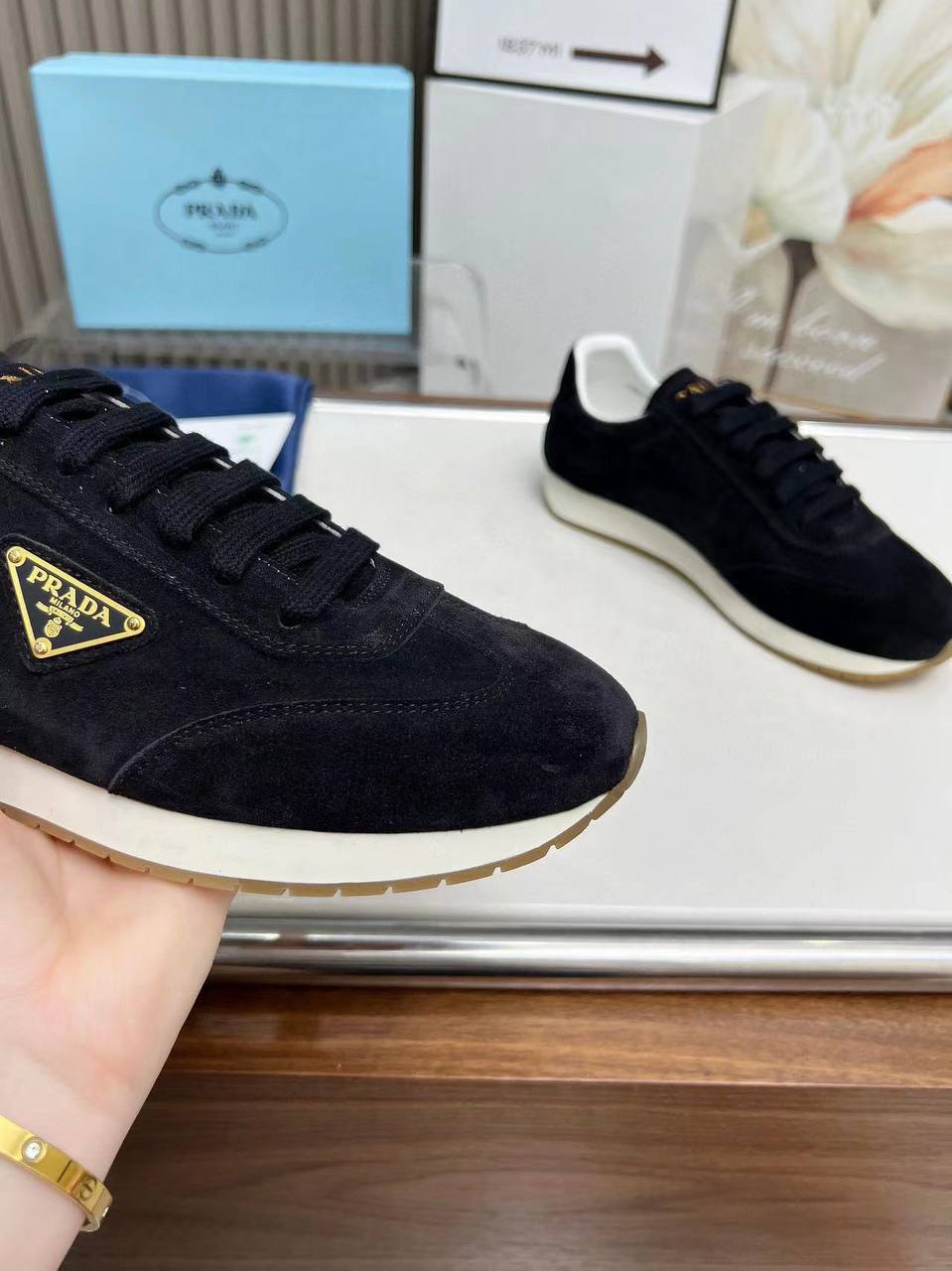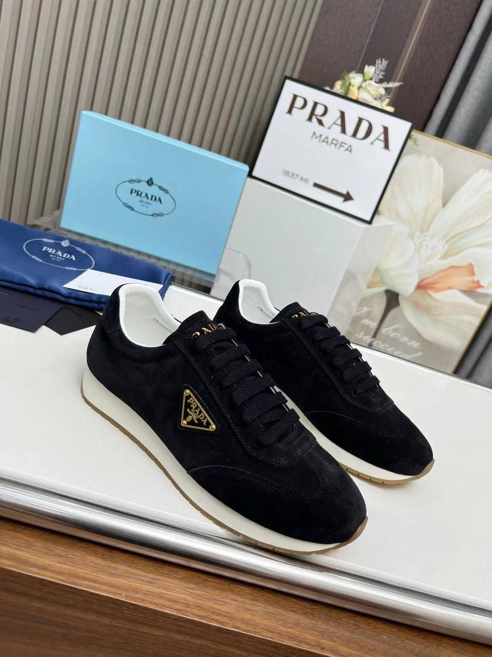 Женские замшевые кроссовки Prada Premium - Black