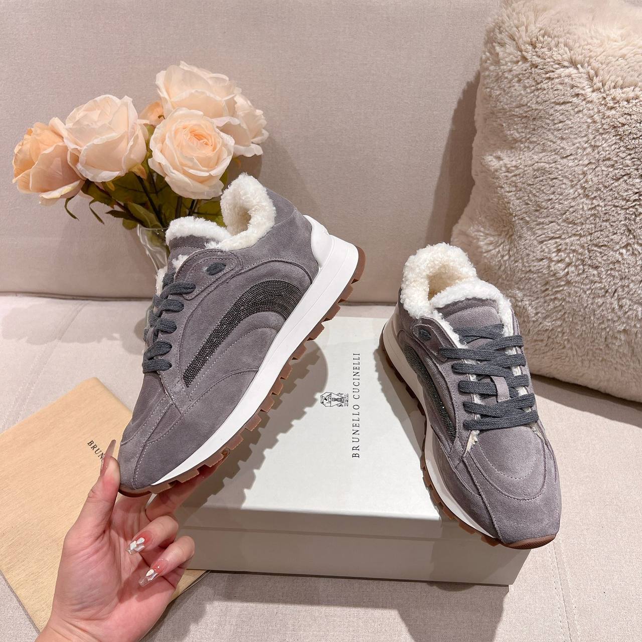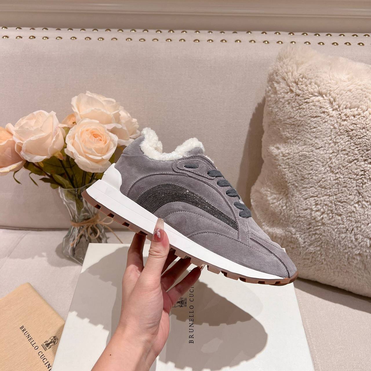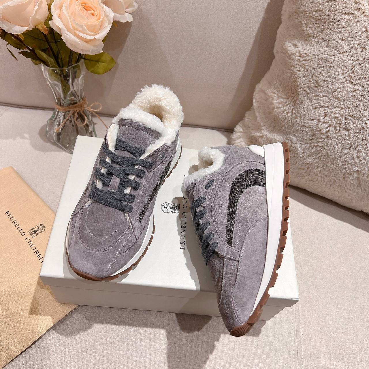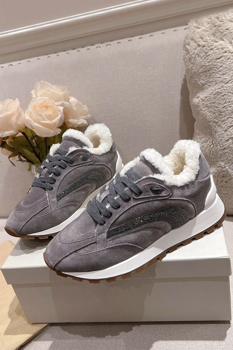 Женские замшевые кроссовки с мехом Brunello Cucinelli Premium
