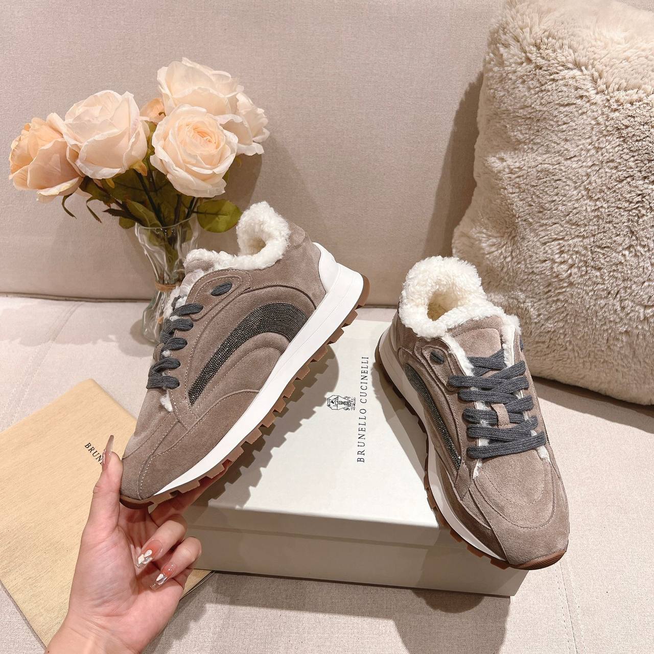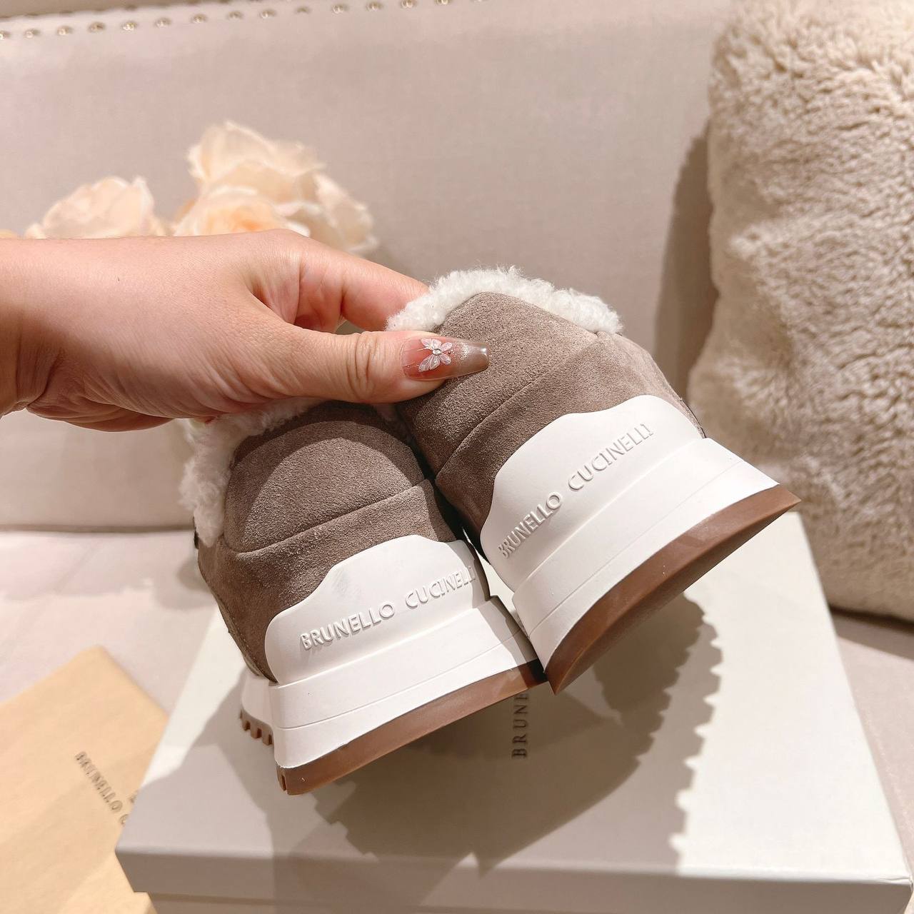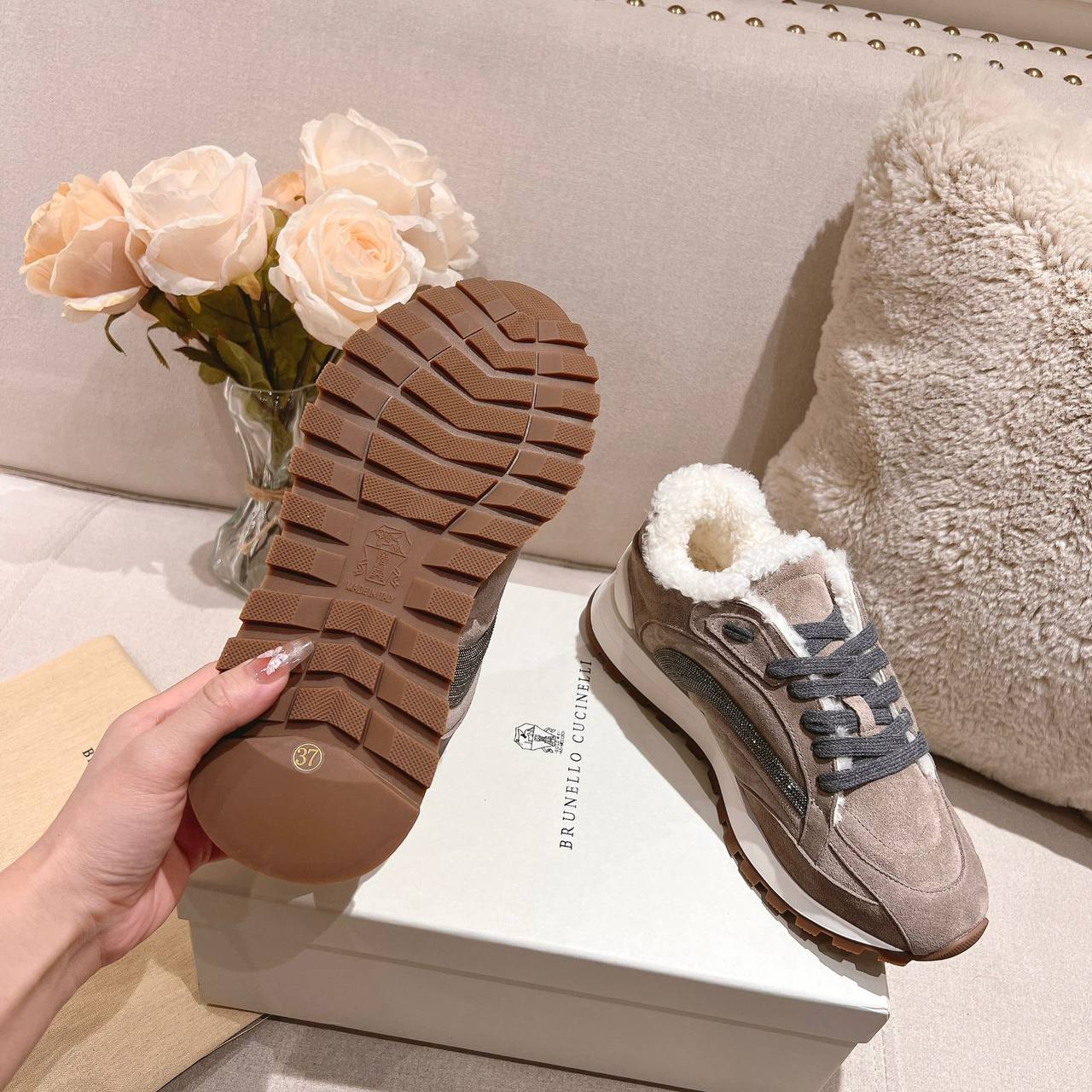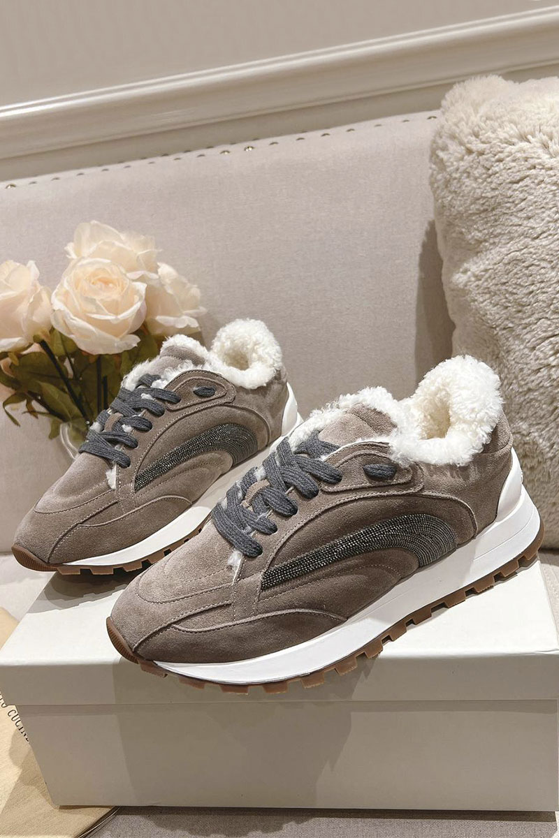 Женские замшевые кроссовки с мехом Brunello Cucinelli Premium