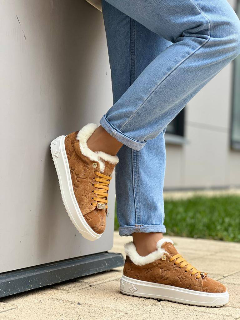 Женские замшевые кроссовки с мехом Louis Vuitton Time Out - Chestnut