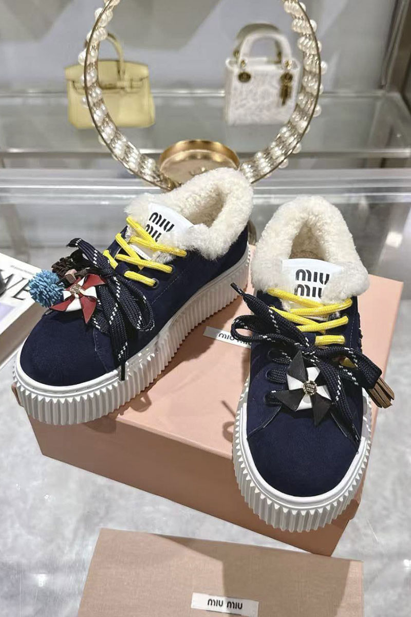 Женские замшевые кроссовки с мехом MIU MIU premium