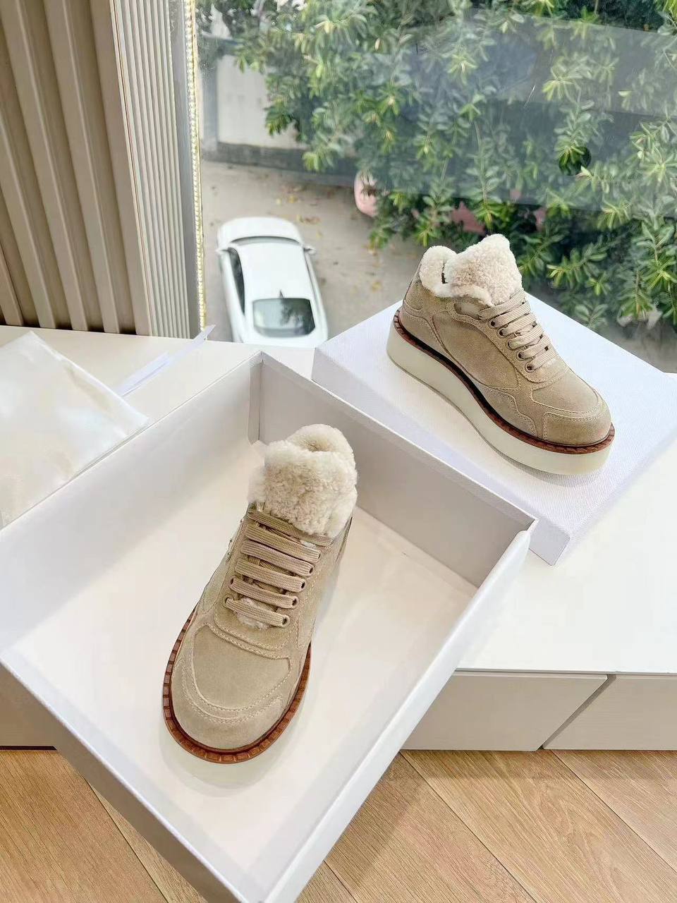 Женские замшевые кроссовки с мехом Prada Premium - Beige