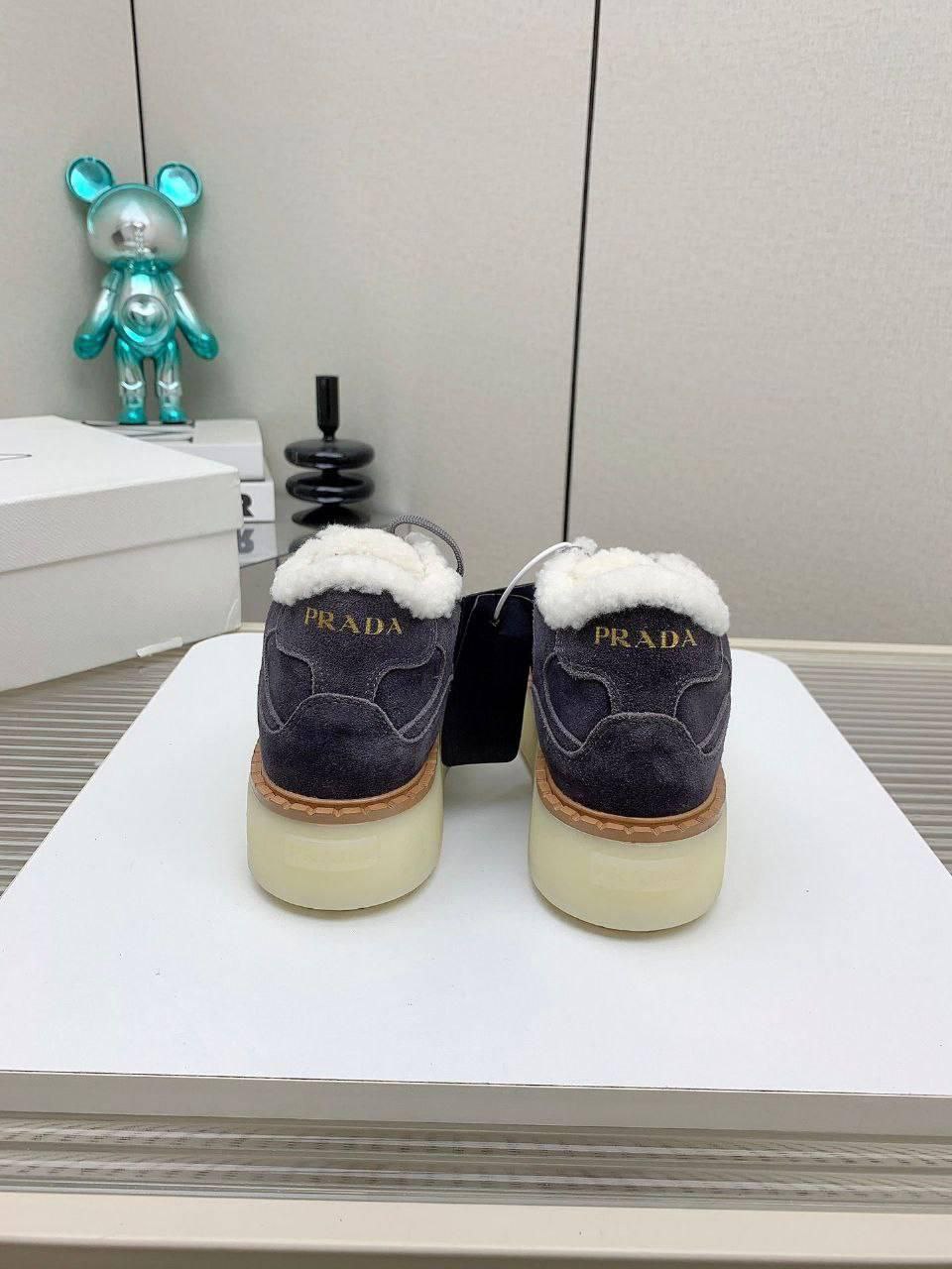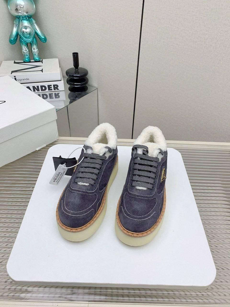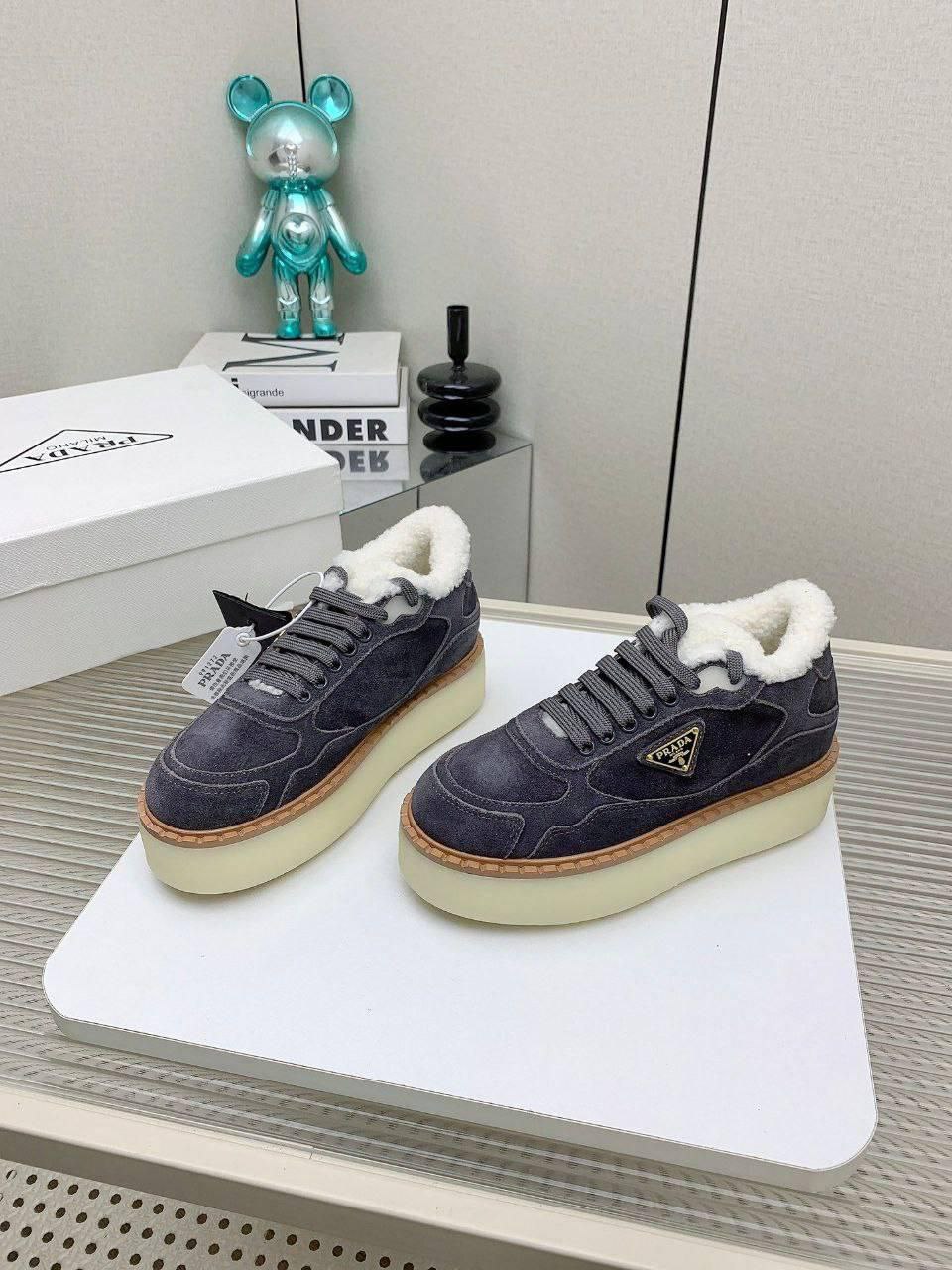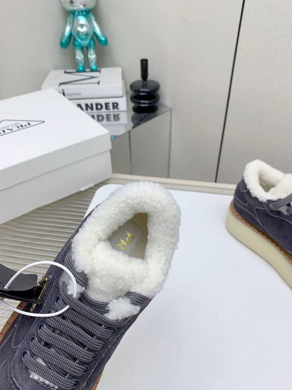 Женские замшевые кроссовки с мехом Prada premium - Grey