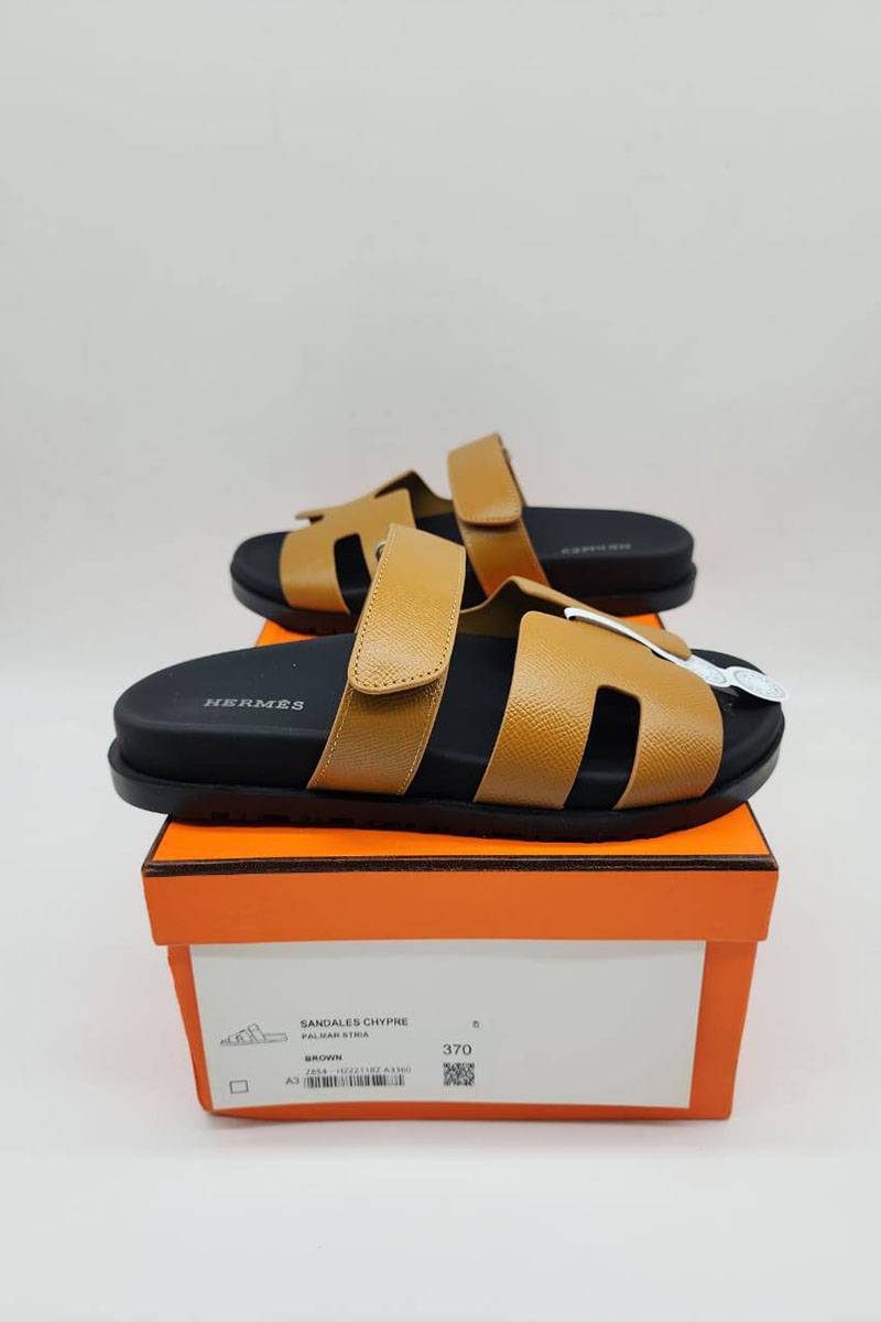 Женские кожаные сандалии Hermes Chypre - Brown / Black