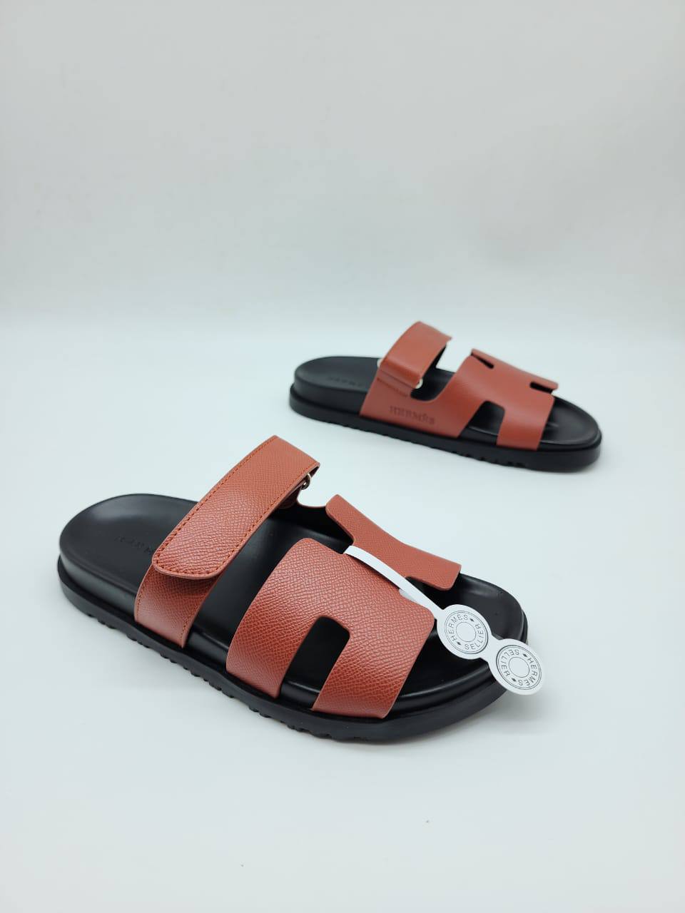 Женские кожаные сандалии Hermes Chypre - Brown / Black