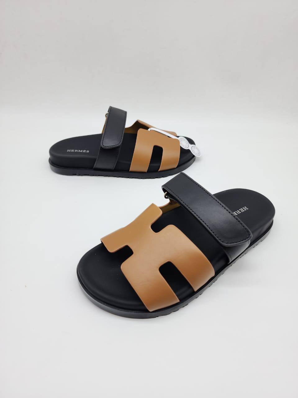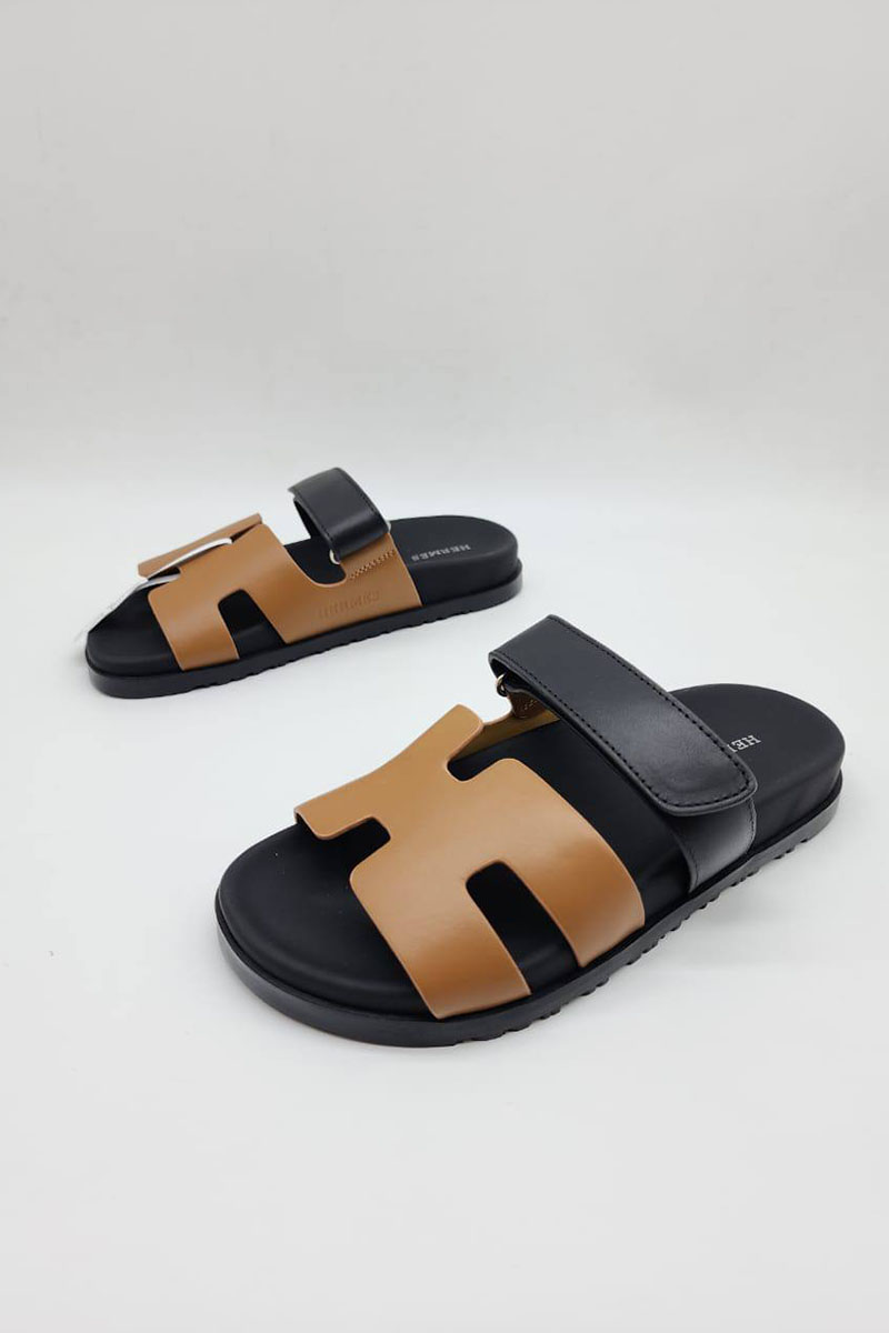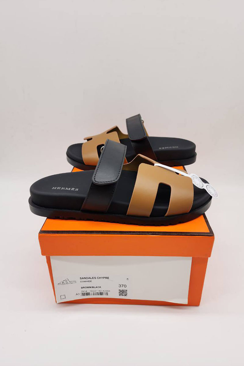Женские кожаные сандалии Hermes Chypre - Brown / Black