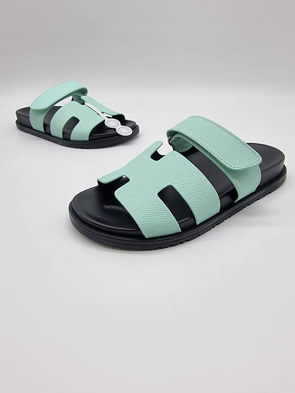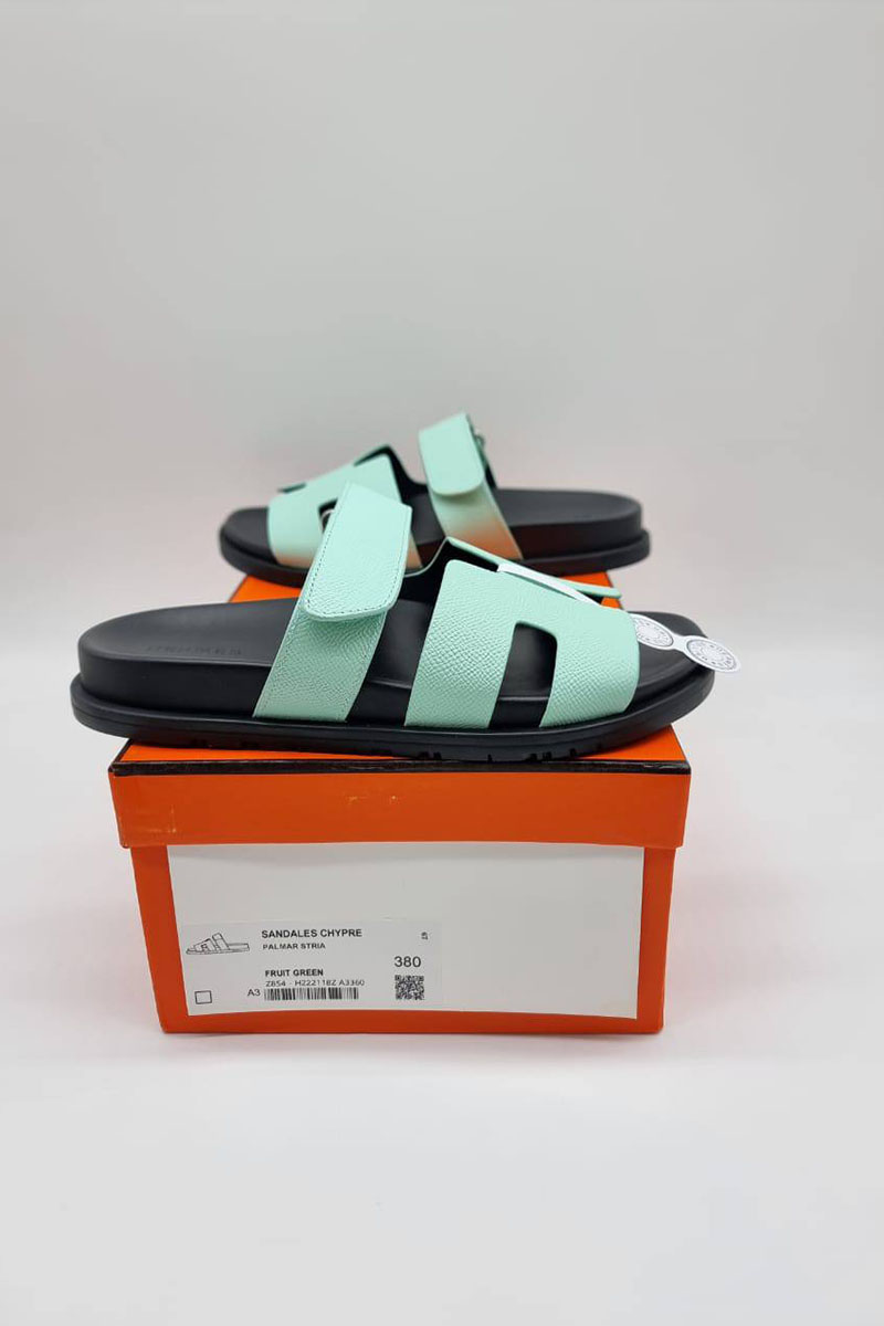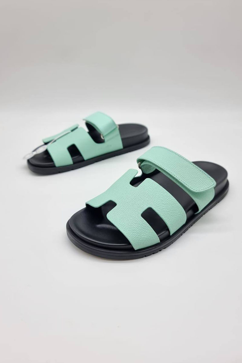 Женские кожаные сандалии Hermes Chypre - Green / Black