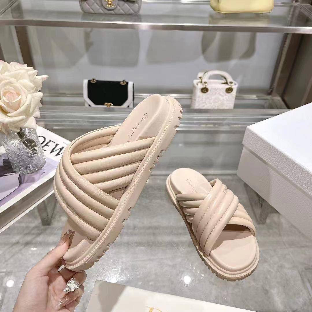 Женские кожаные шлёпанцы Dior D-Cross - Pink