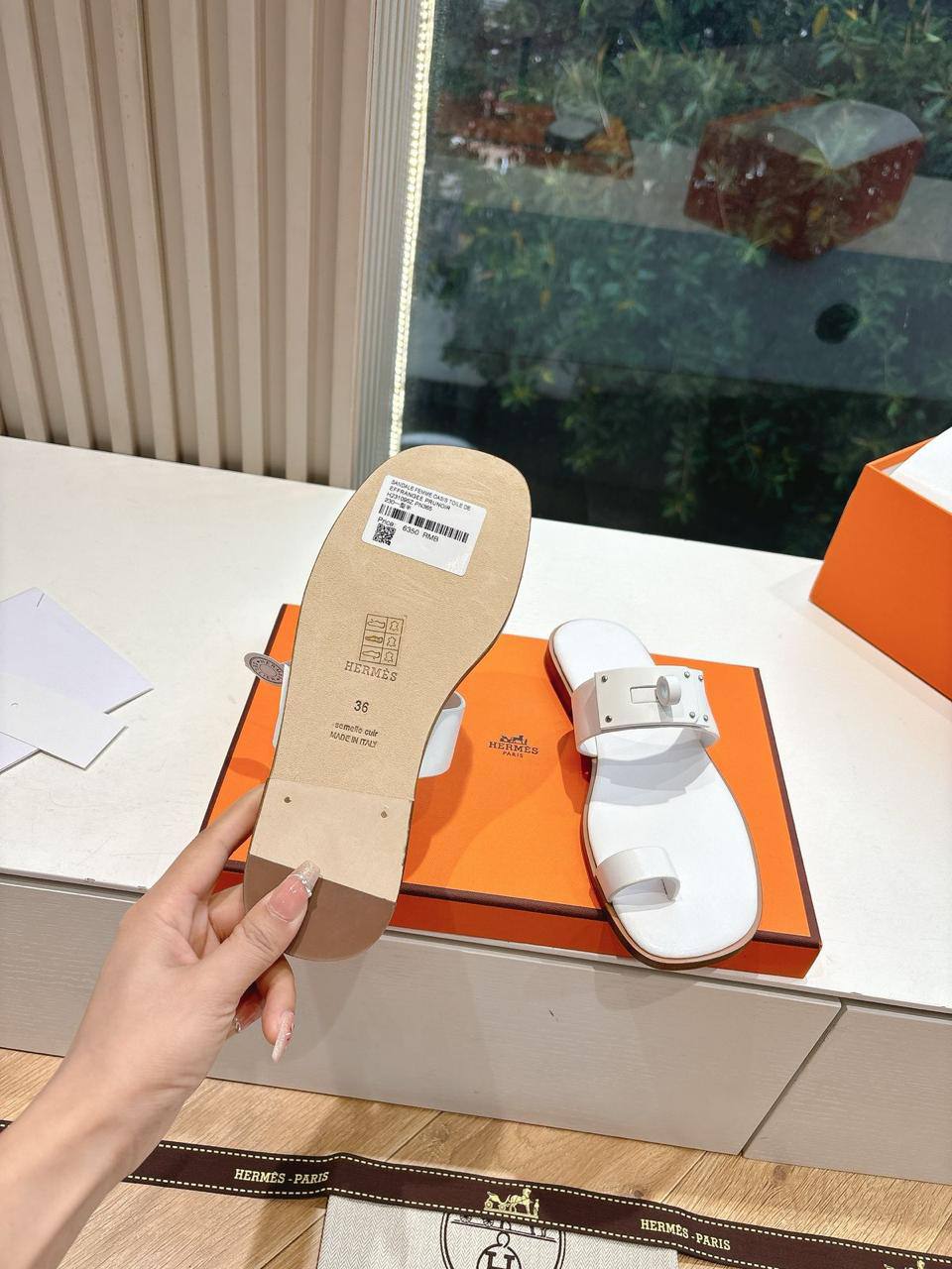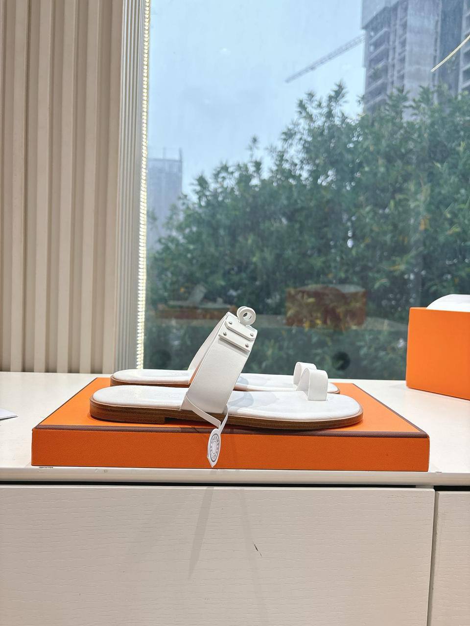 Женские кожаные шлёпанцы Hermes July Kelly premium