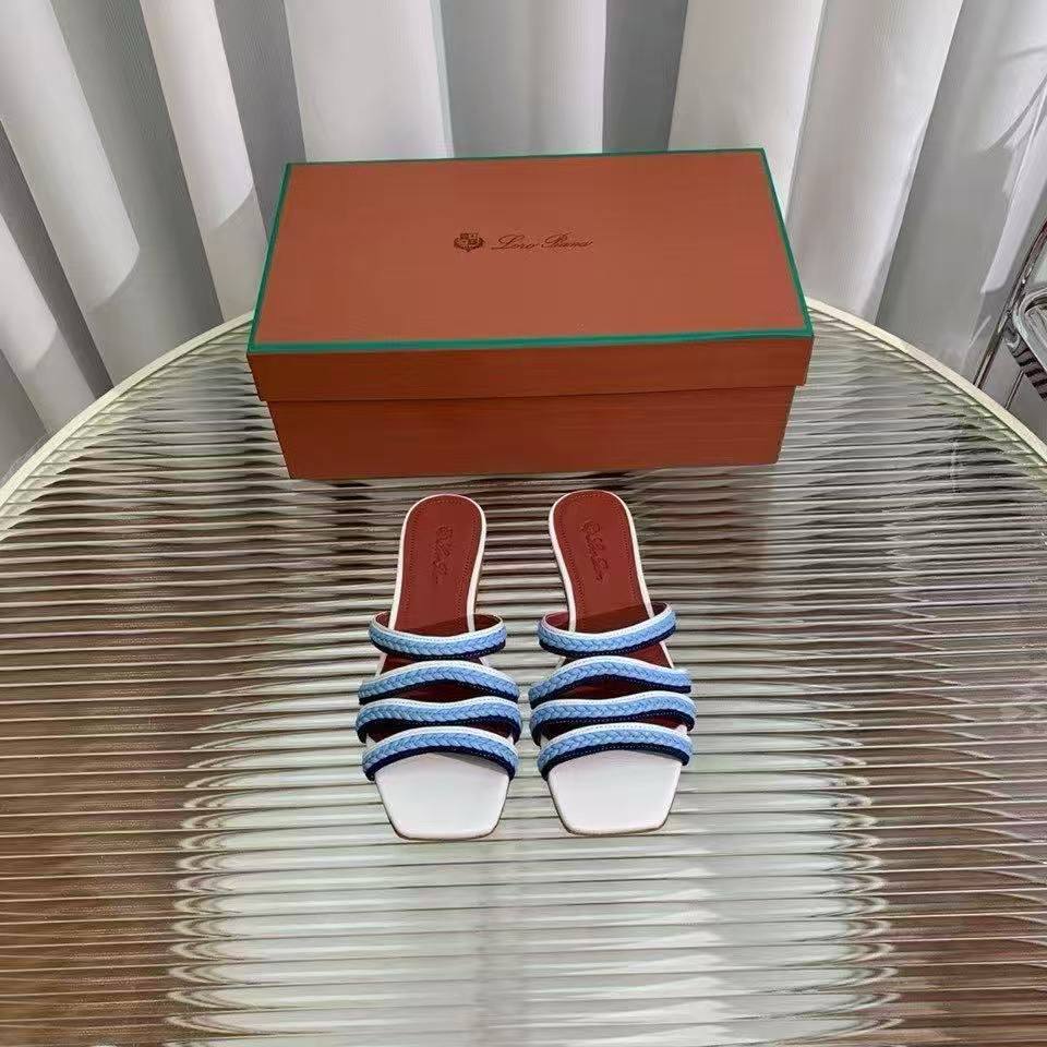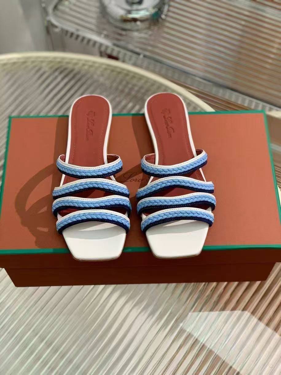 Женские кожаные шлёпанцы Loro Piana Premium