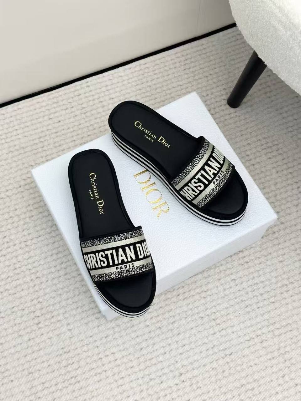 Женские шлёпанцы на платформе Dior Premium - Black