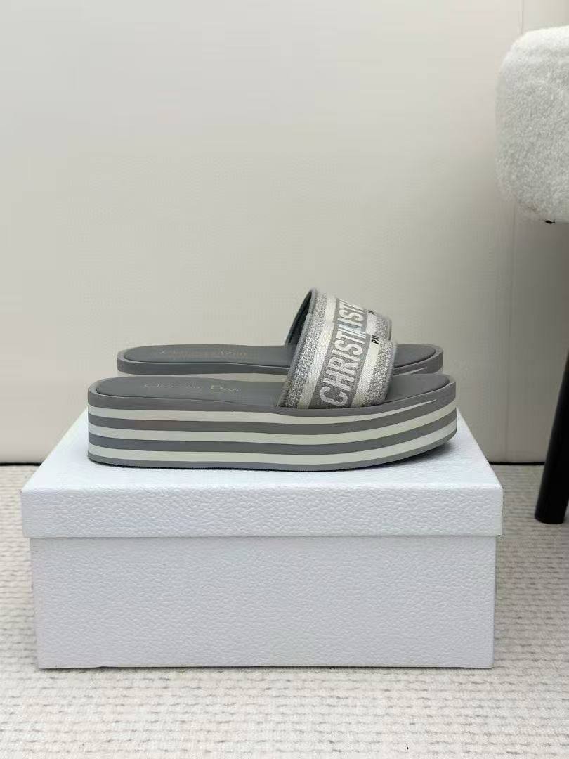 Женские шлёпанцы на платформе Dior Premium - Grey