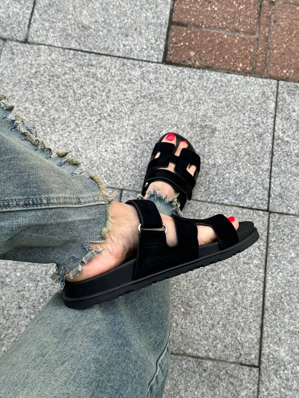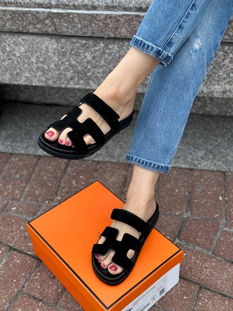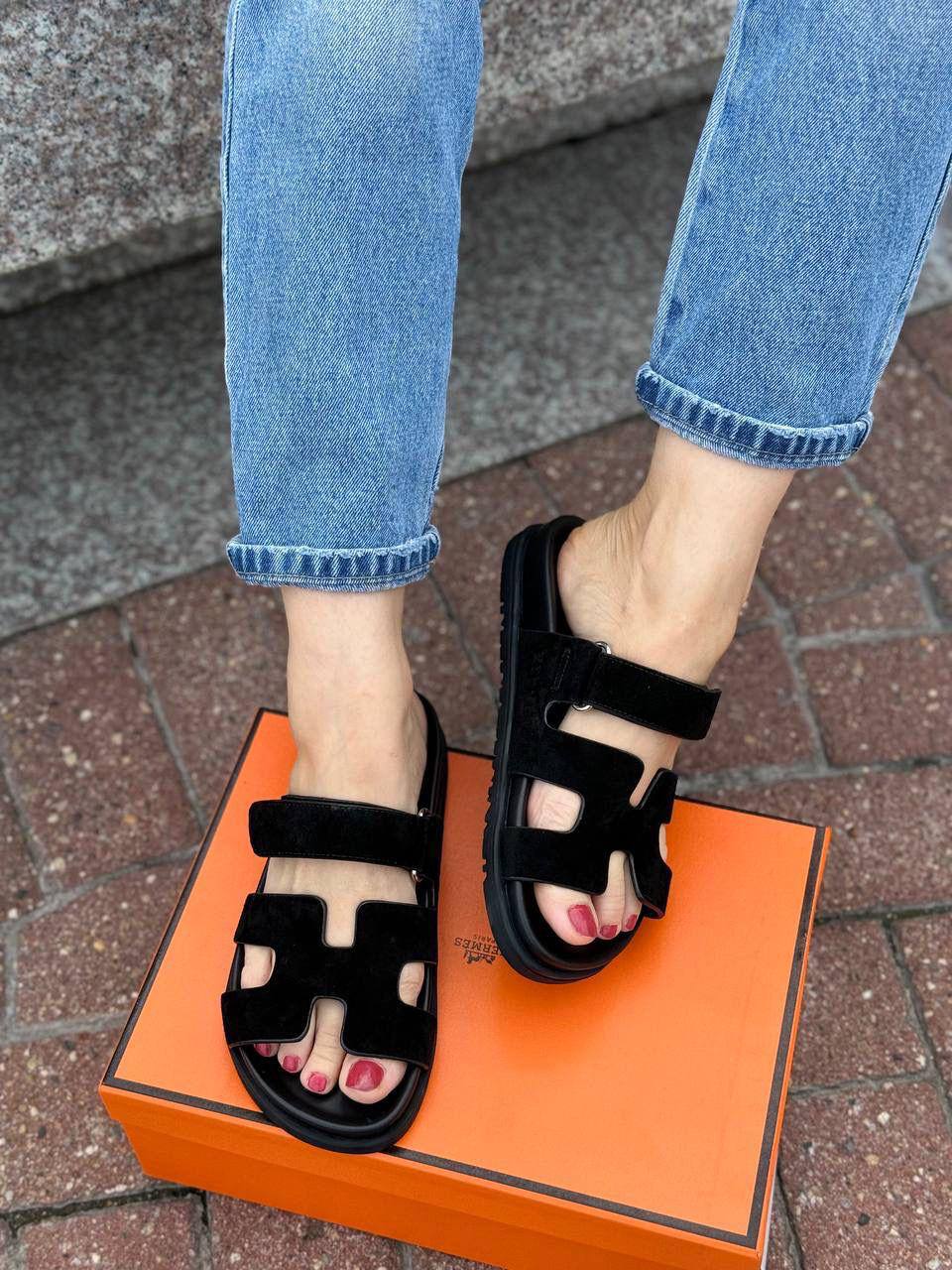 Женские замшевые сандалии Hermes Chypre - Black