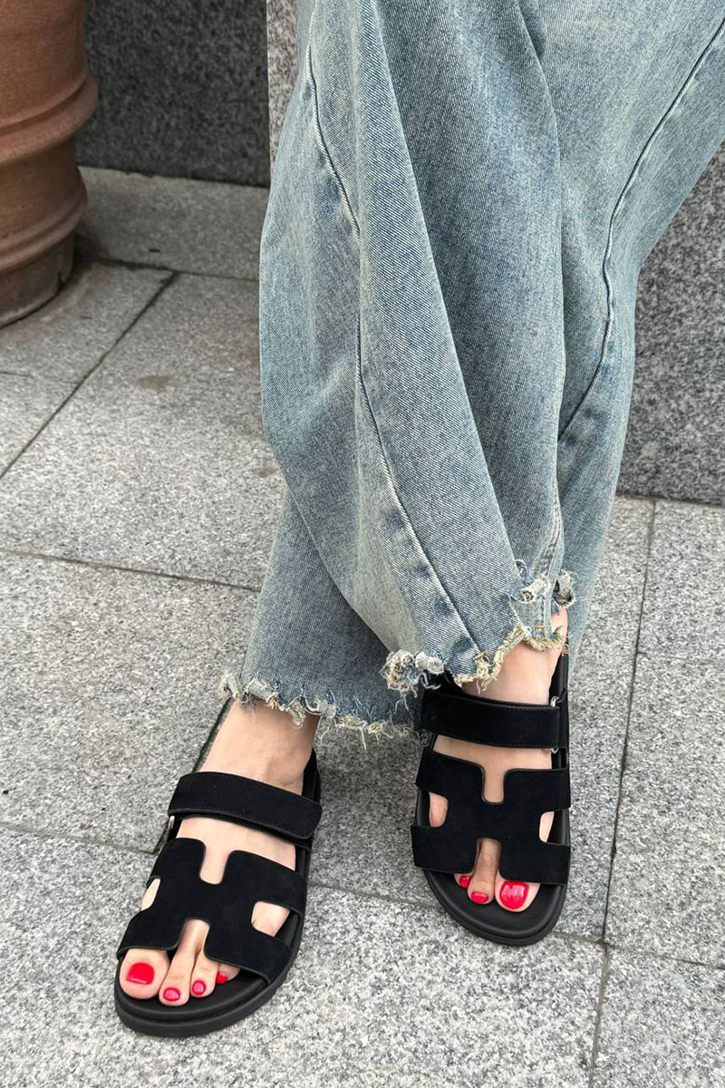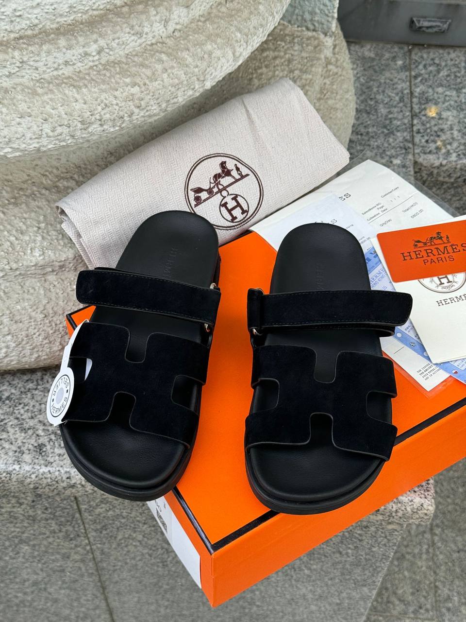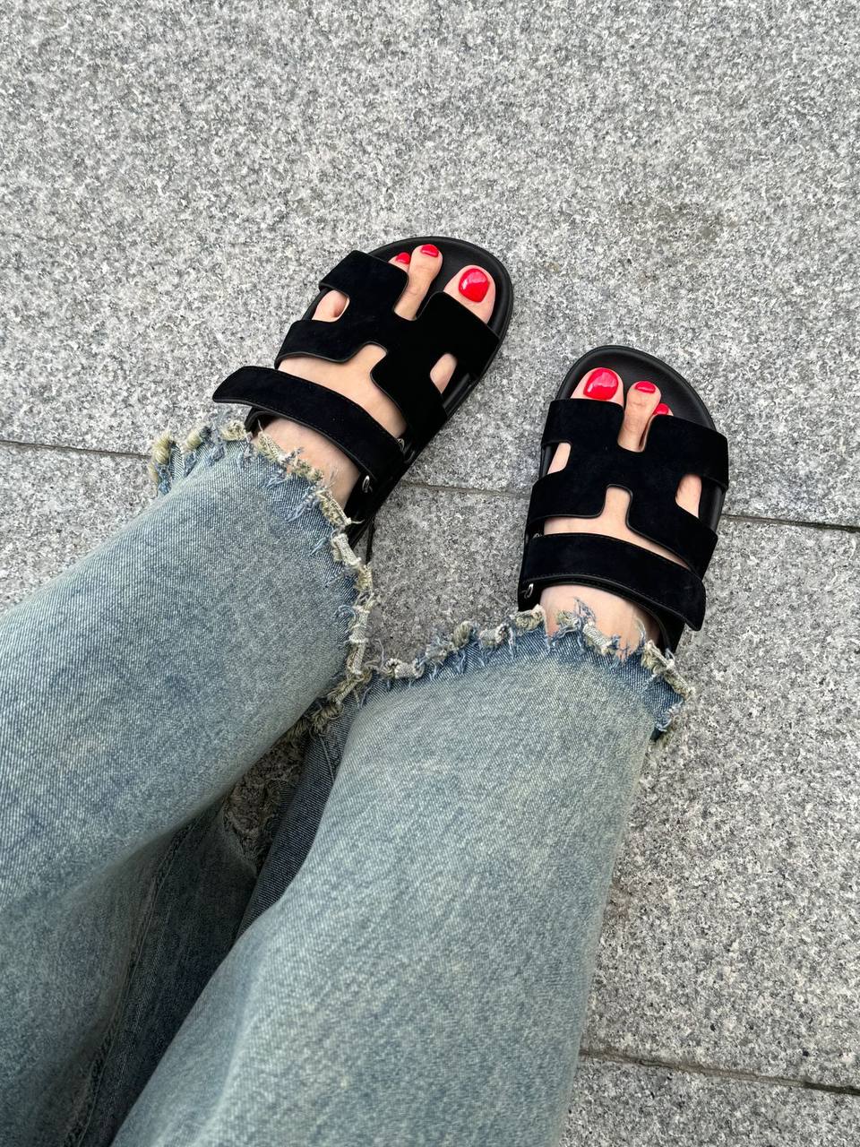 Женские замшевые сандалии Hermes Chypre - Black