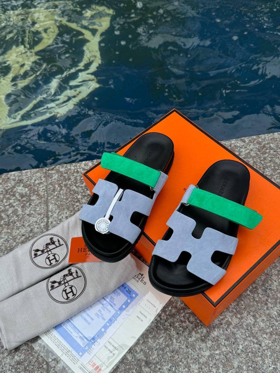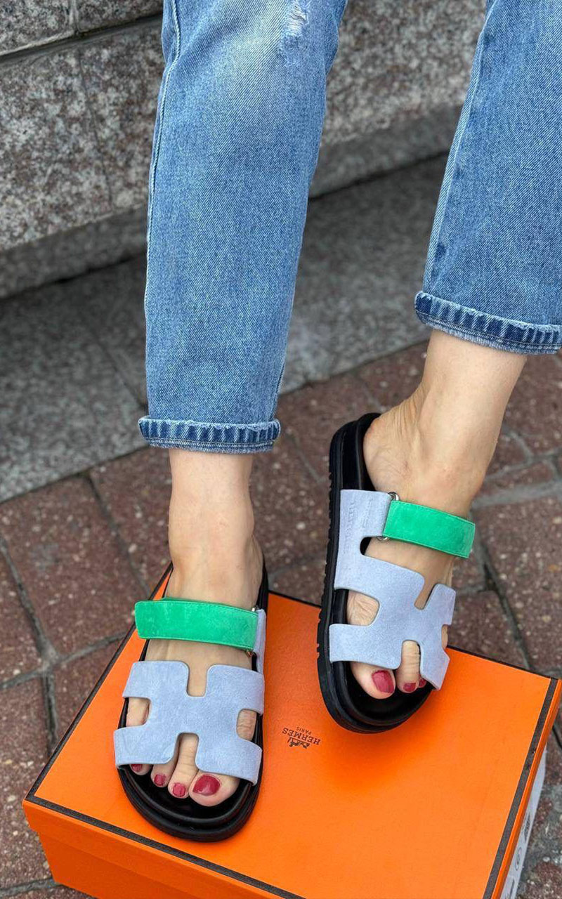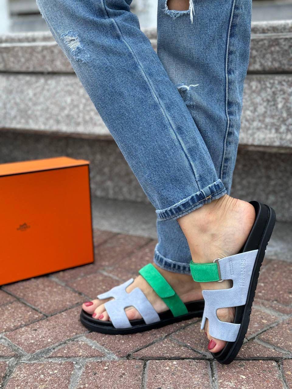 Женские замшевые сандалии Hermes Chypre - Green / Blue