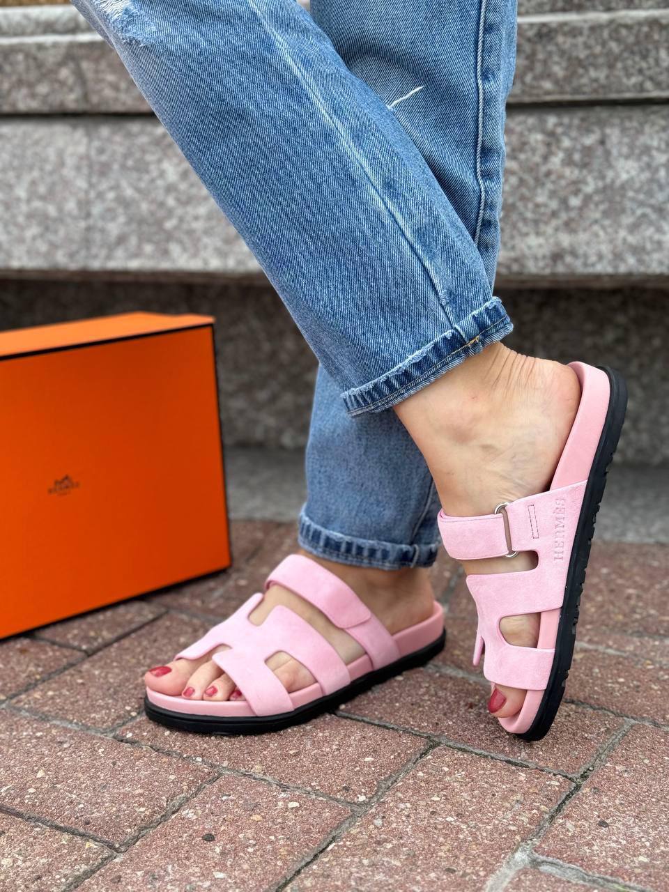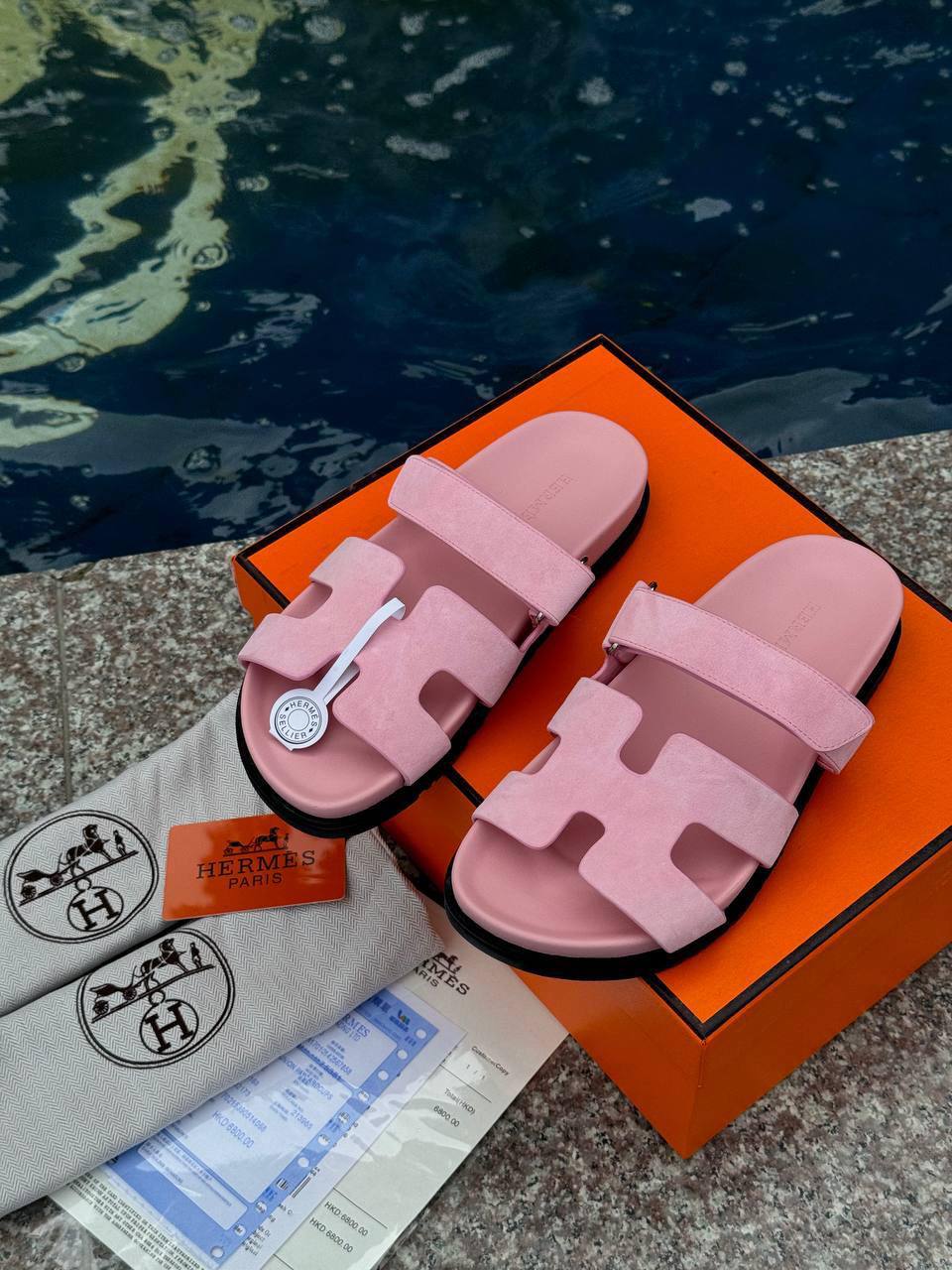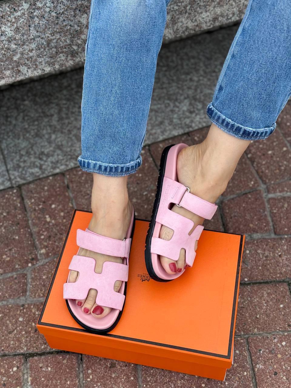 Женские замшевые сандалии Hermes Chypre - Pink