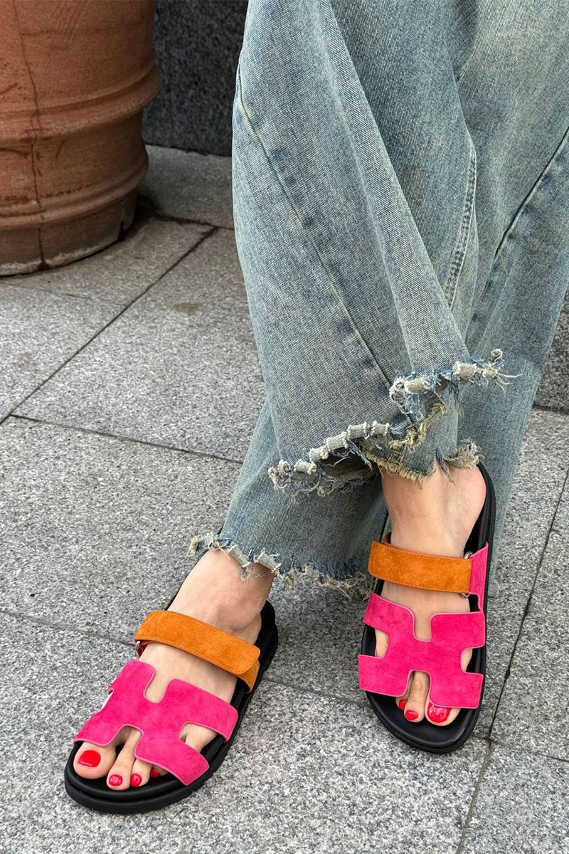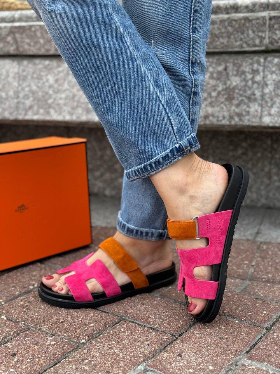 Женские замшевые сандалии Hermes Chypre - Pink / Orange