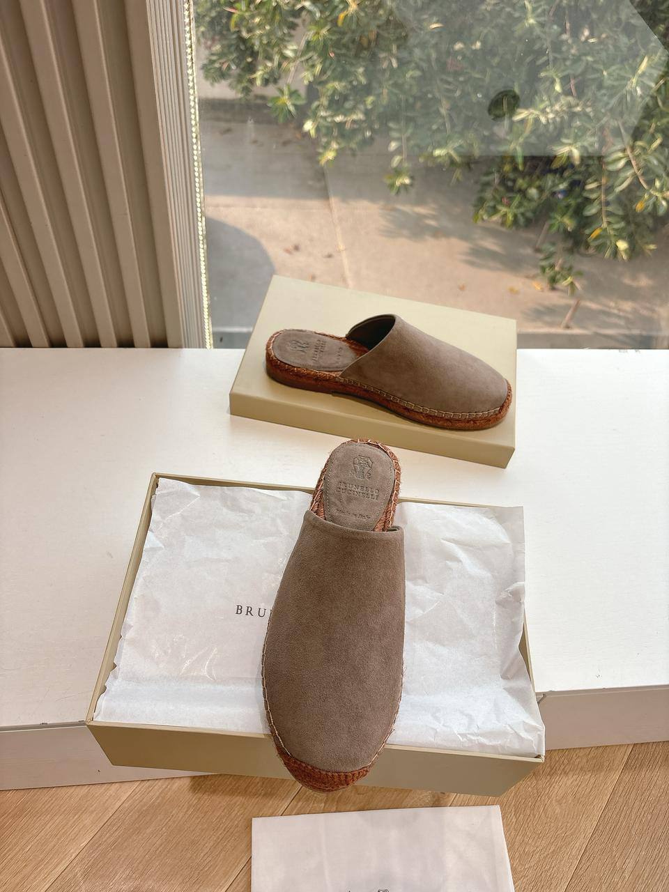 Женские замшевые шлёпанцы Brunello Cucinelli Premium - Brown