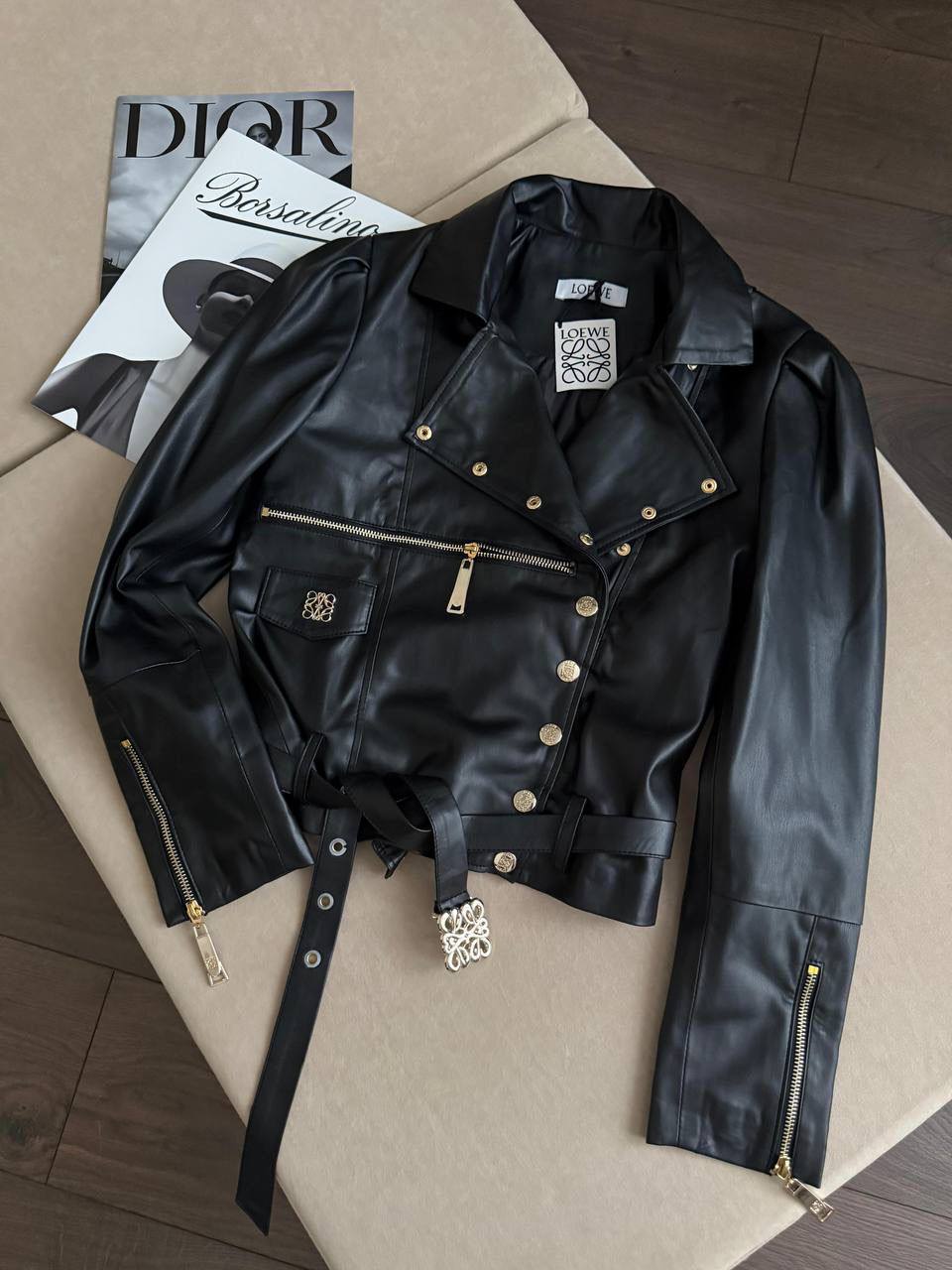 Женская кожаная куртка Loewe premium - Black