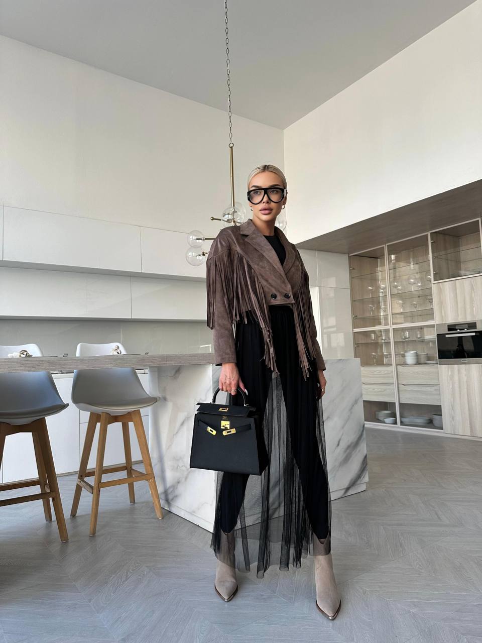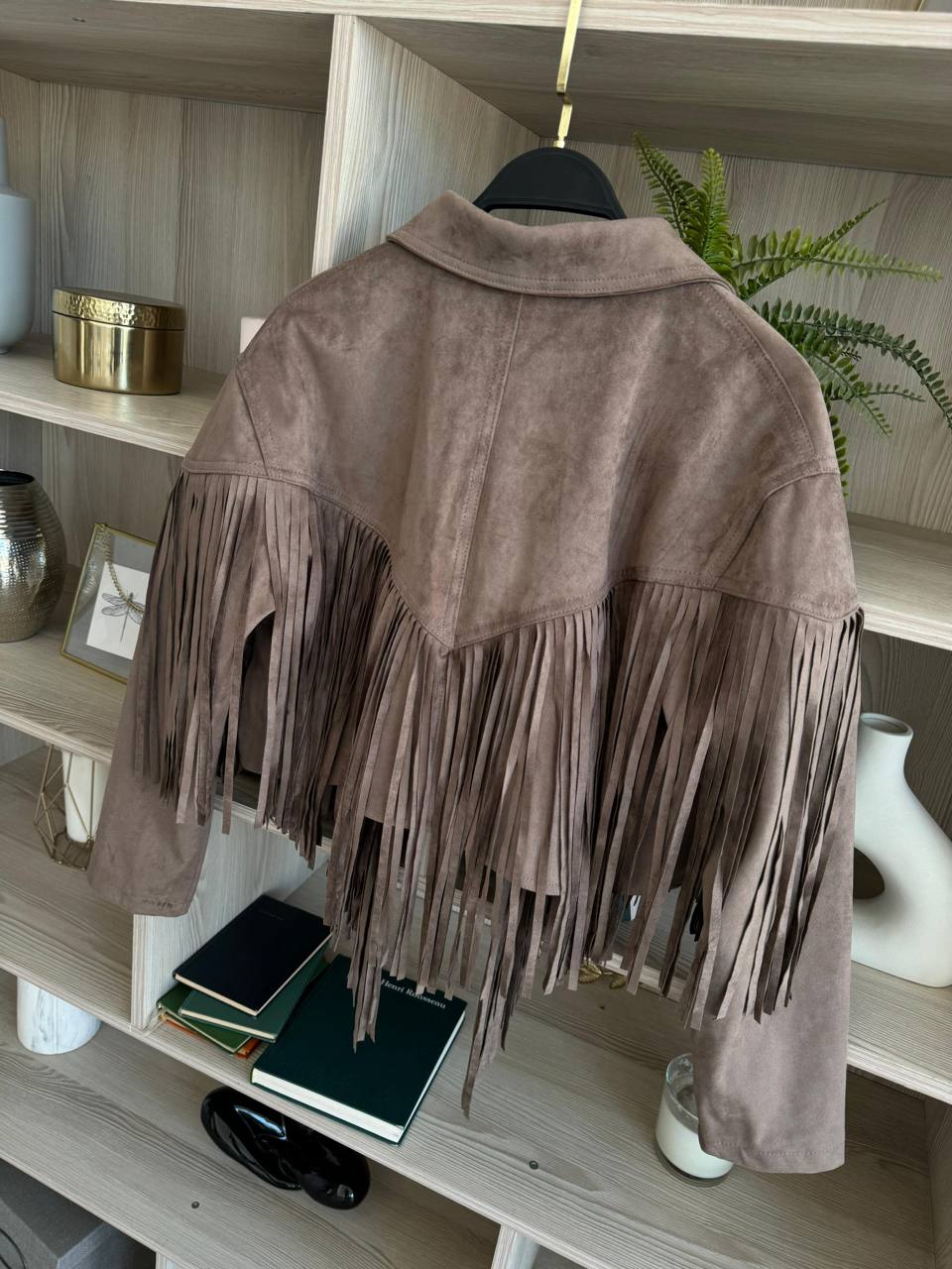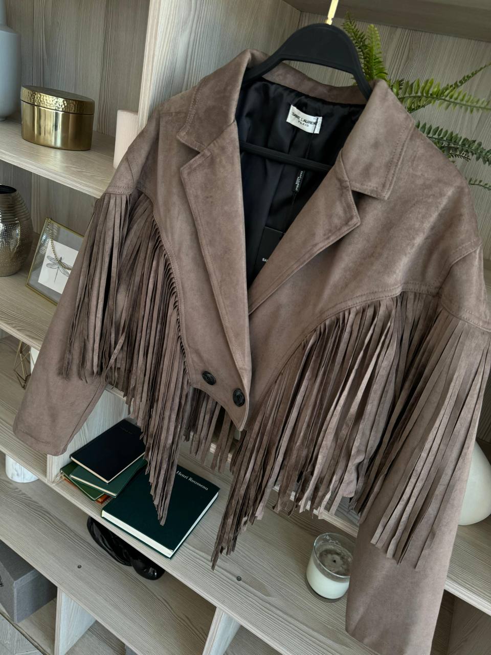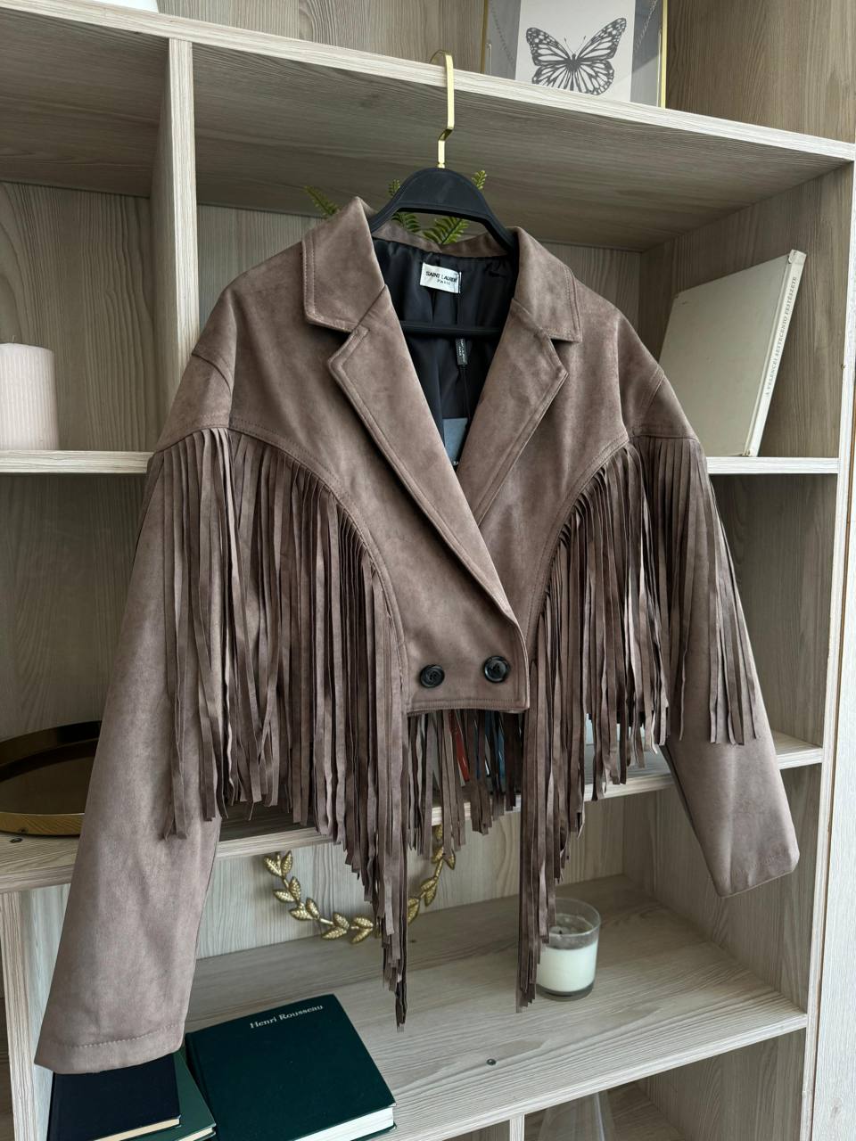Женская замшевая косуха с бахромой Yves Saint Laurent