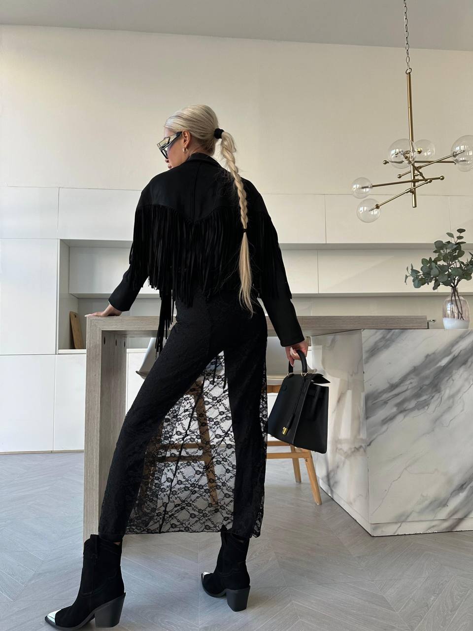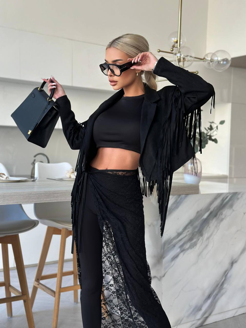 Женская замшевая косуха с бахромой Yves Saint Laurent