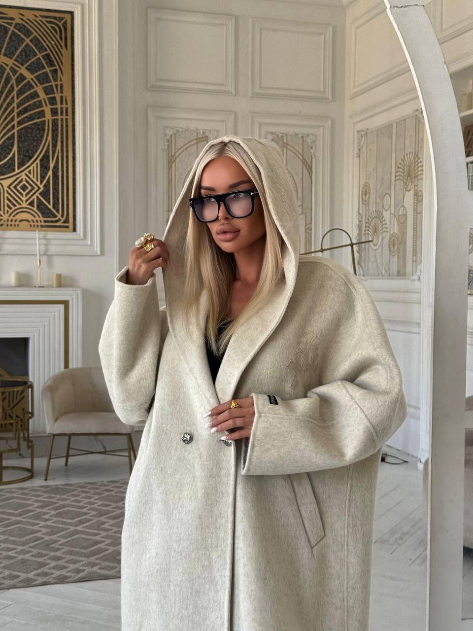 Женское пальто с капюшоном Chrome Hearts premium - Beige