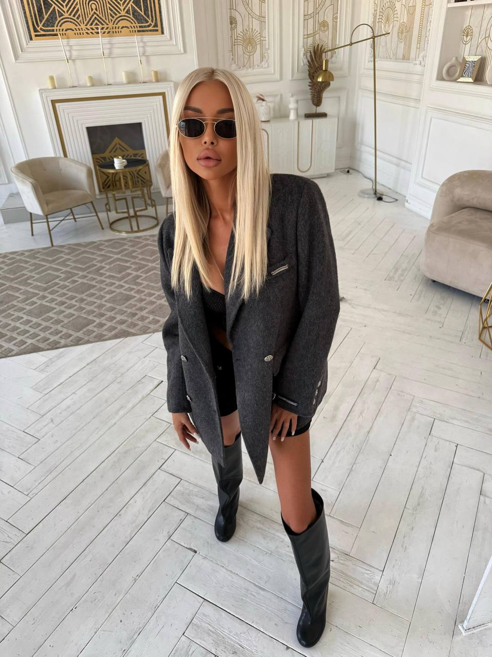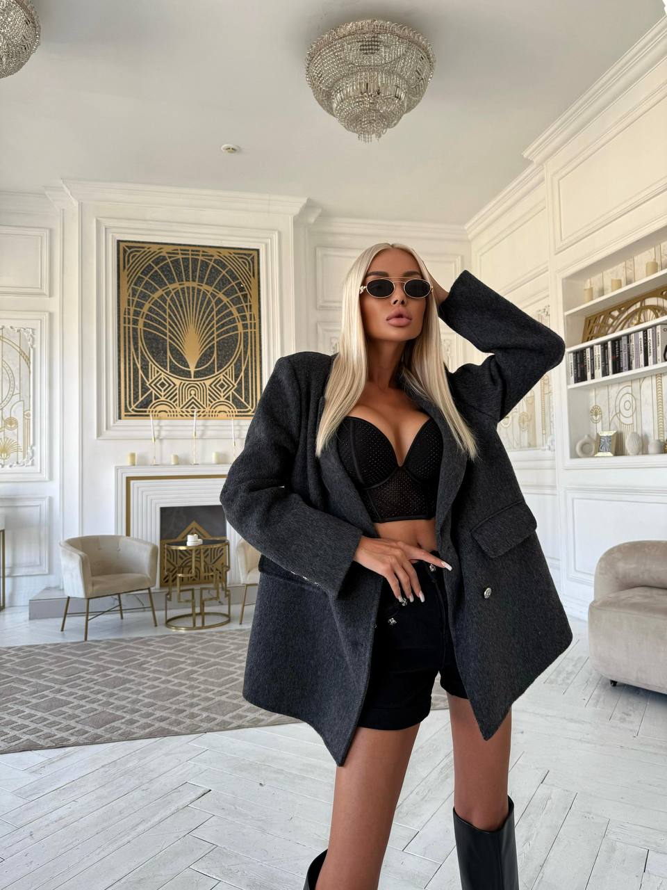 Женское шерстяное пальто пиджак Chrome Hearts Premium - Grey