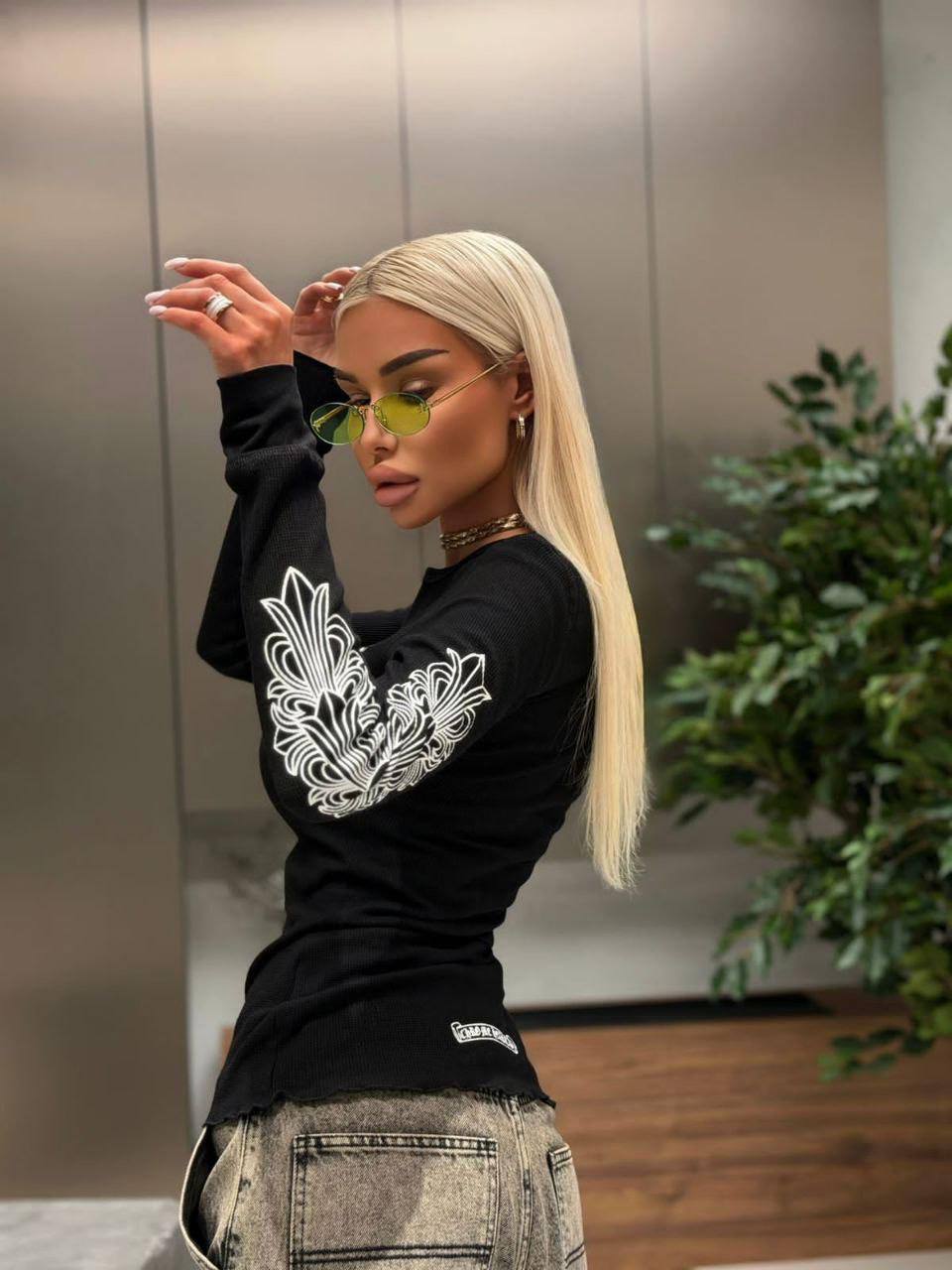Чёрный женский лонгслив Chrome Hearts premium