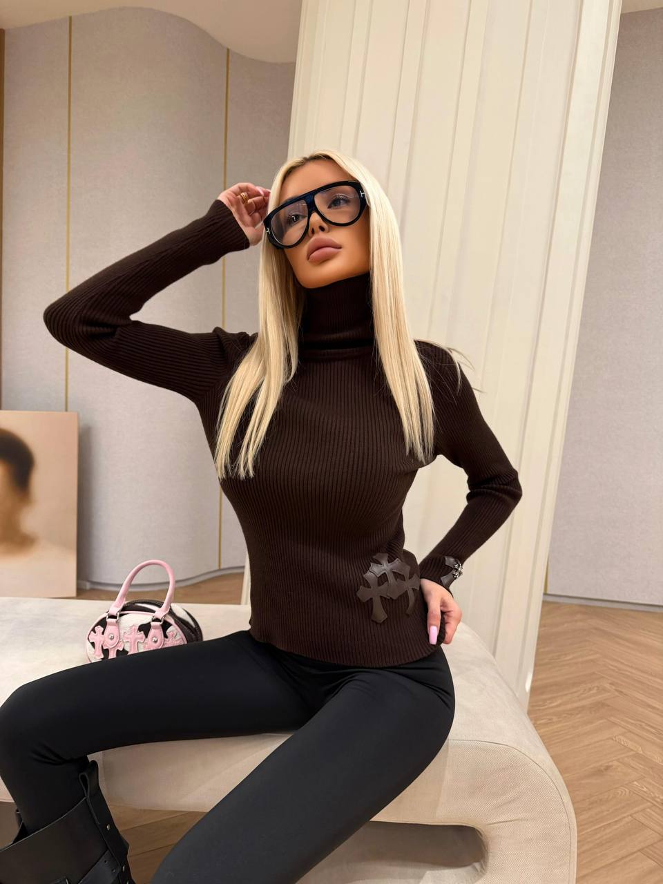 Женская мягкая водолазка Chrome Hearts premium - Brown