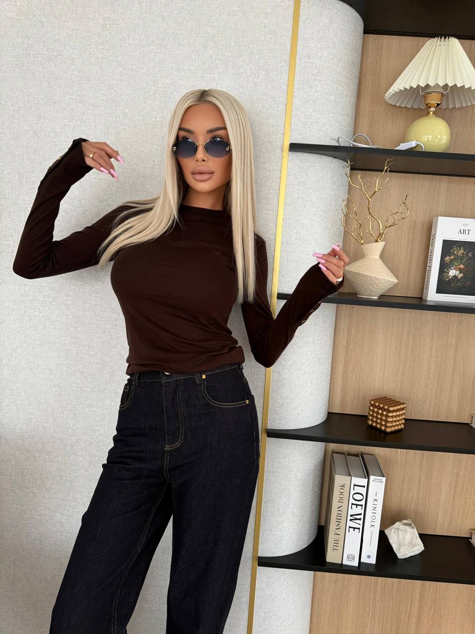 Женский базовый лонгслив Loro Piana Premium - Brown
