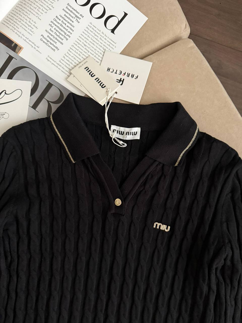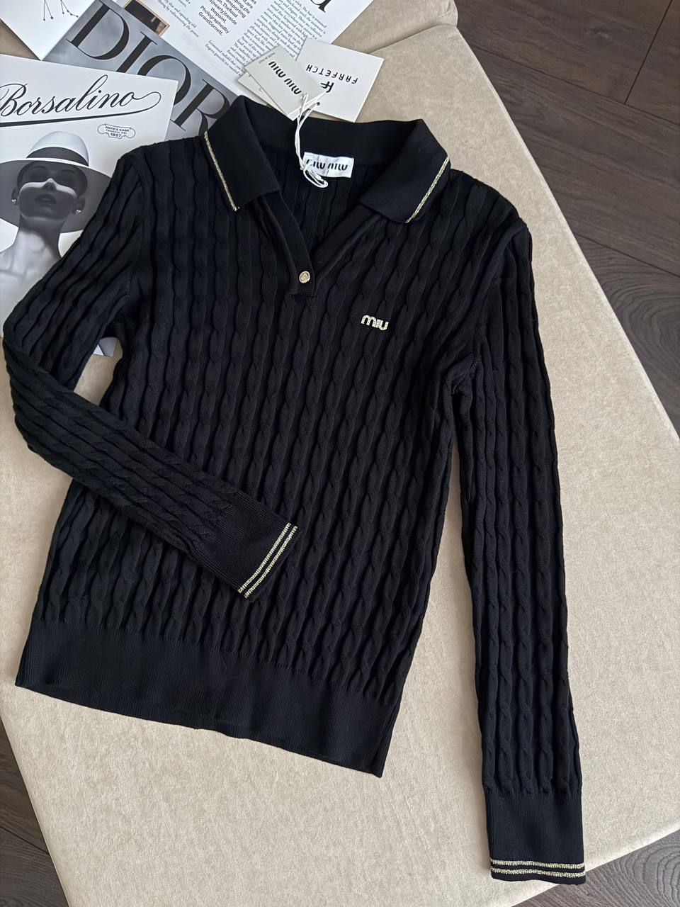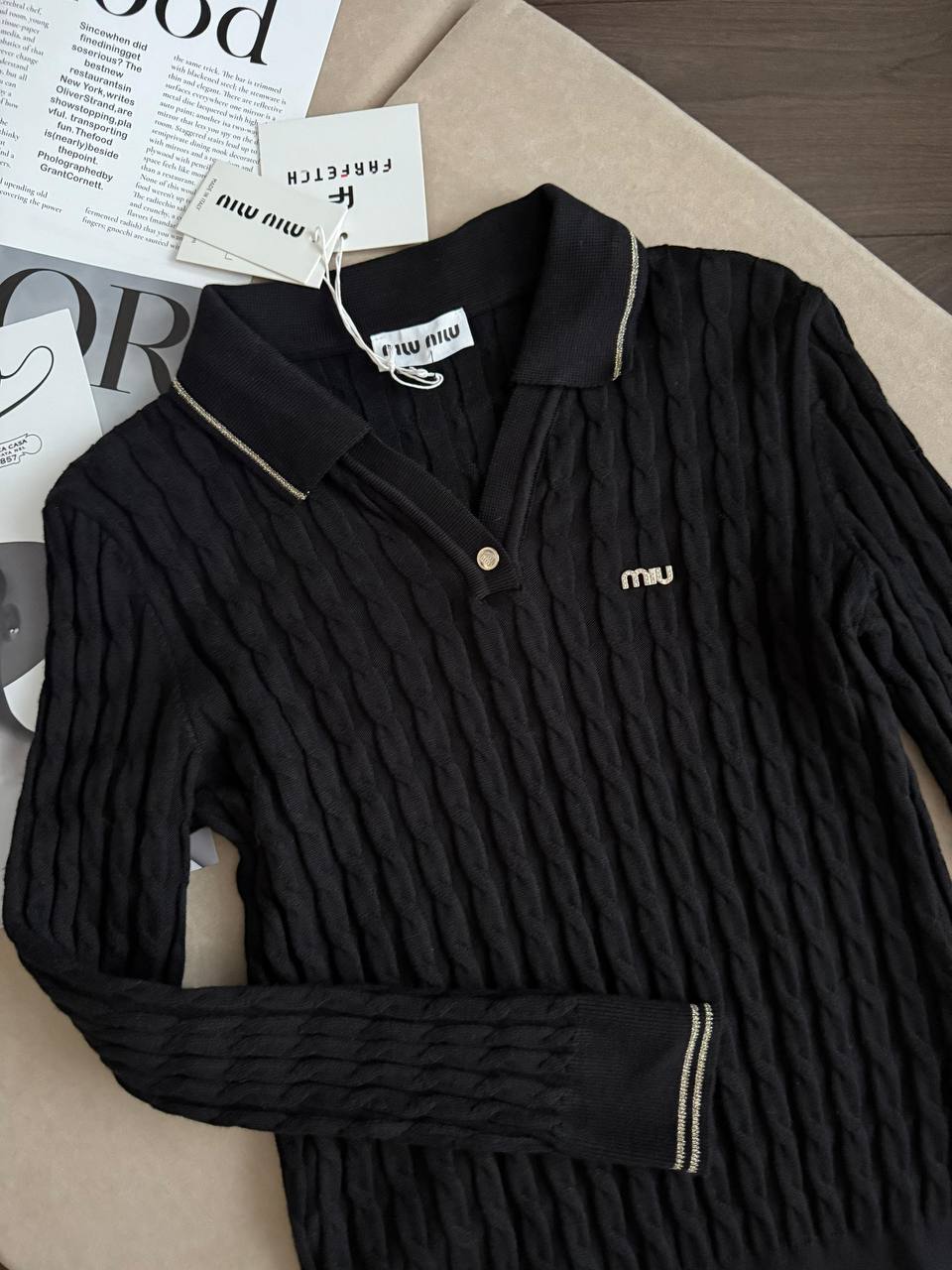 Женское поло с длинным рукавом MIU MIU premium - Black