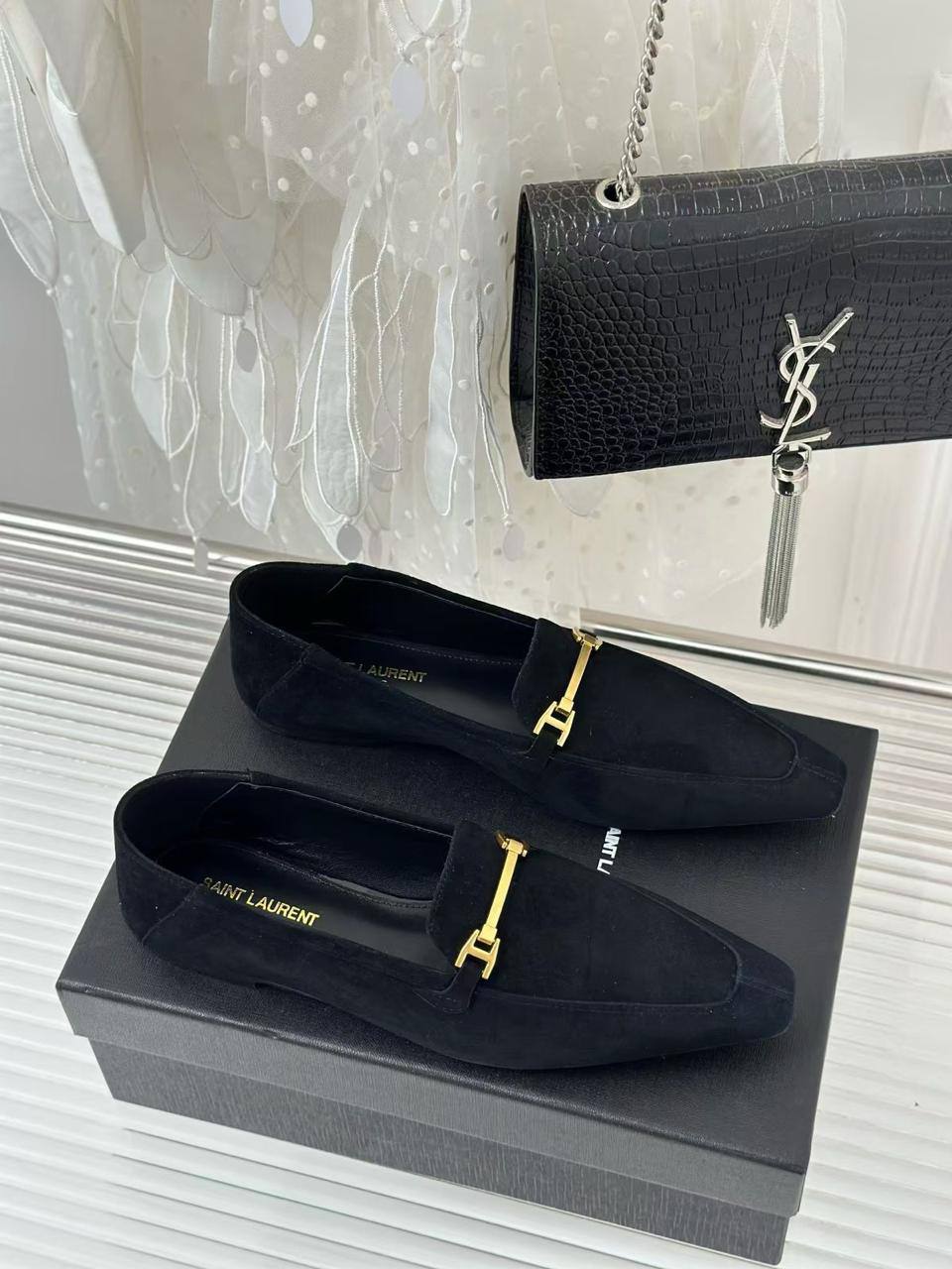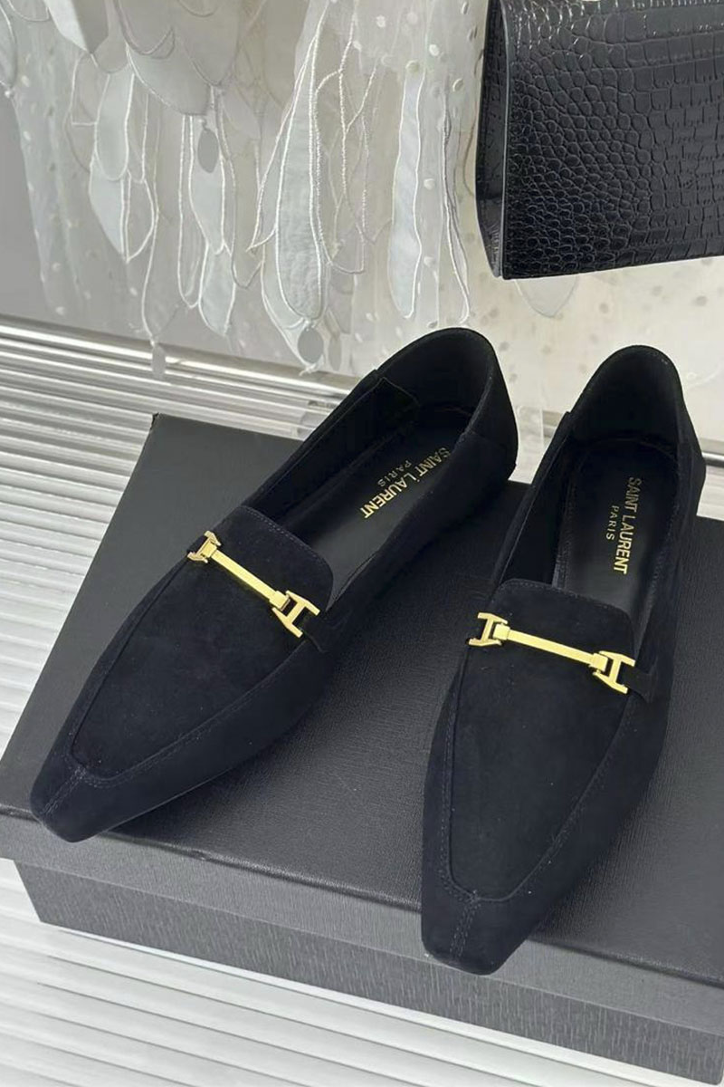 Женские замшевые лоферы чёрного цвета Yves Saint Laurent premium