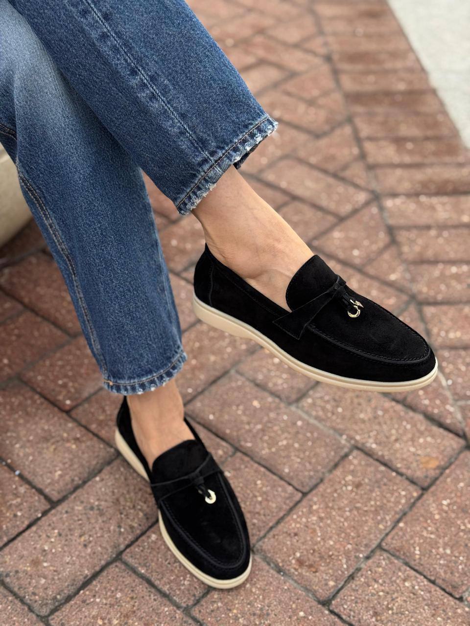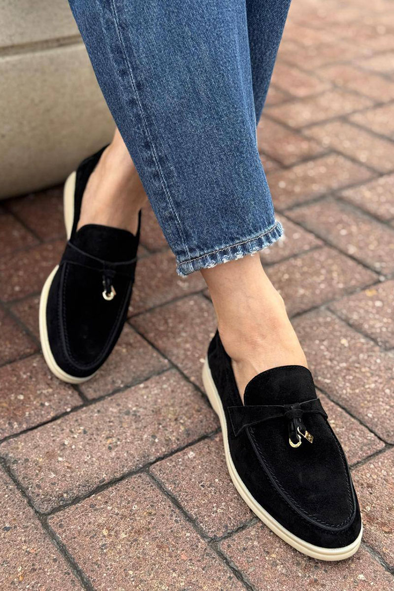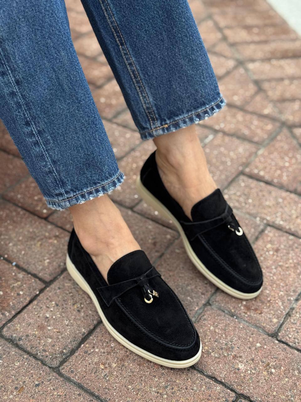 Женские замшевые лоферы Loro Piana Open Walk - Black