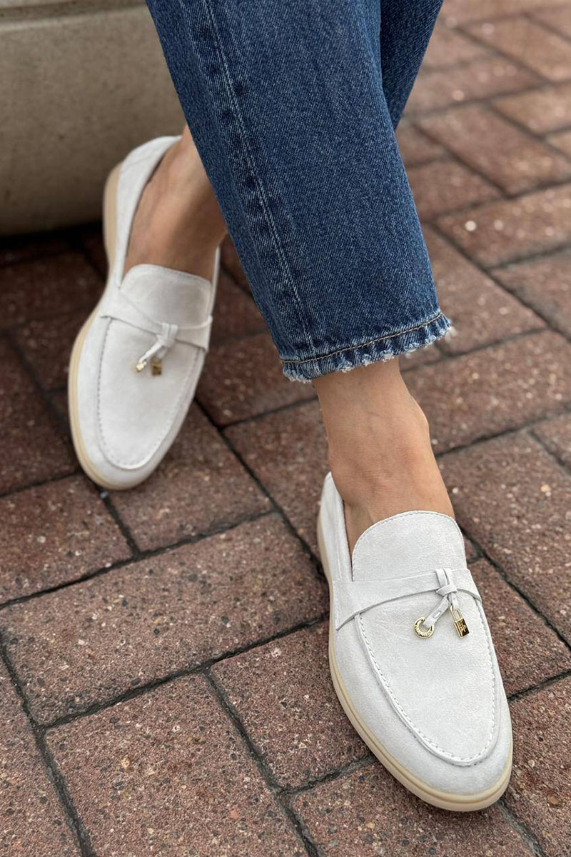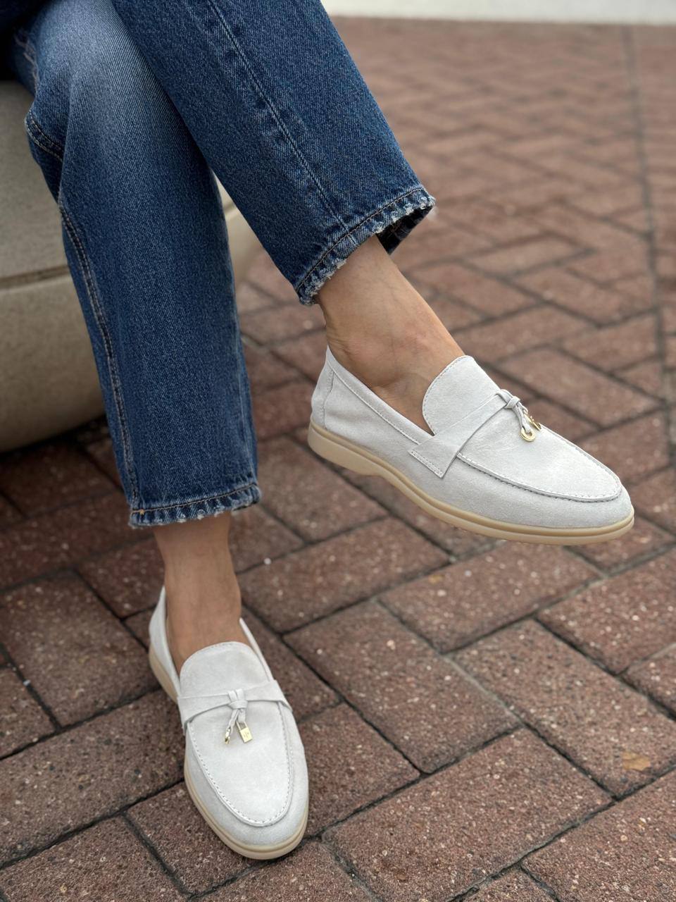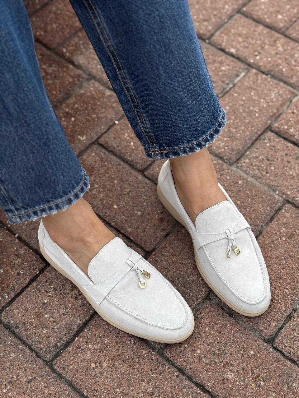 Женские замшевые лоферы Loro Piana Open Walk - White