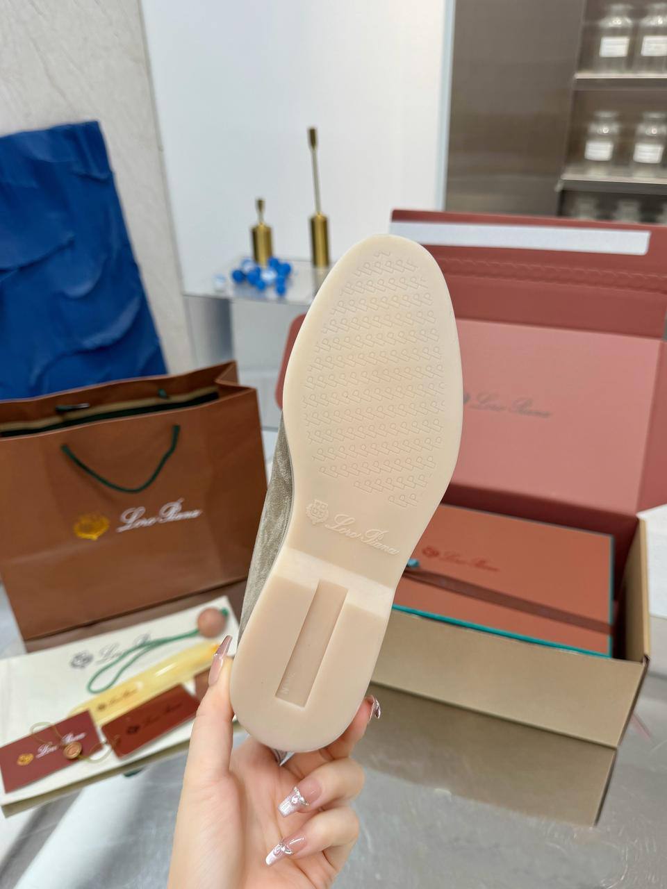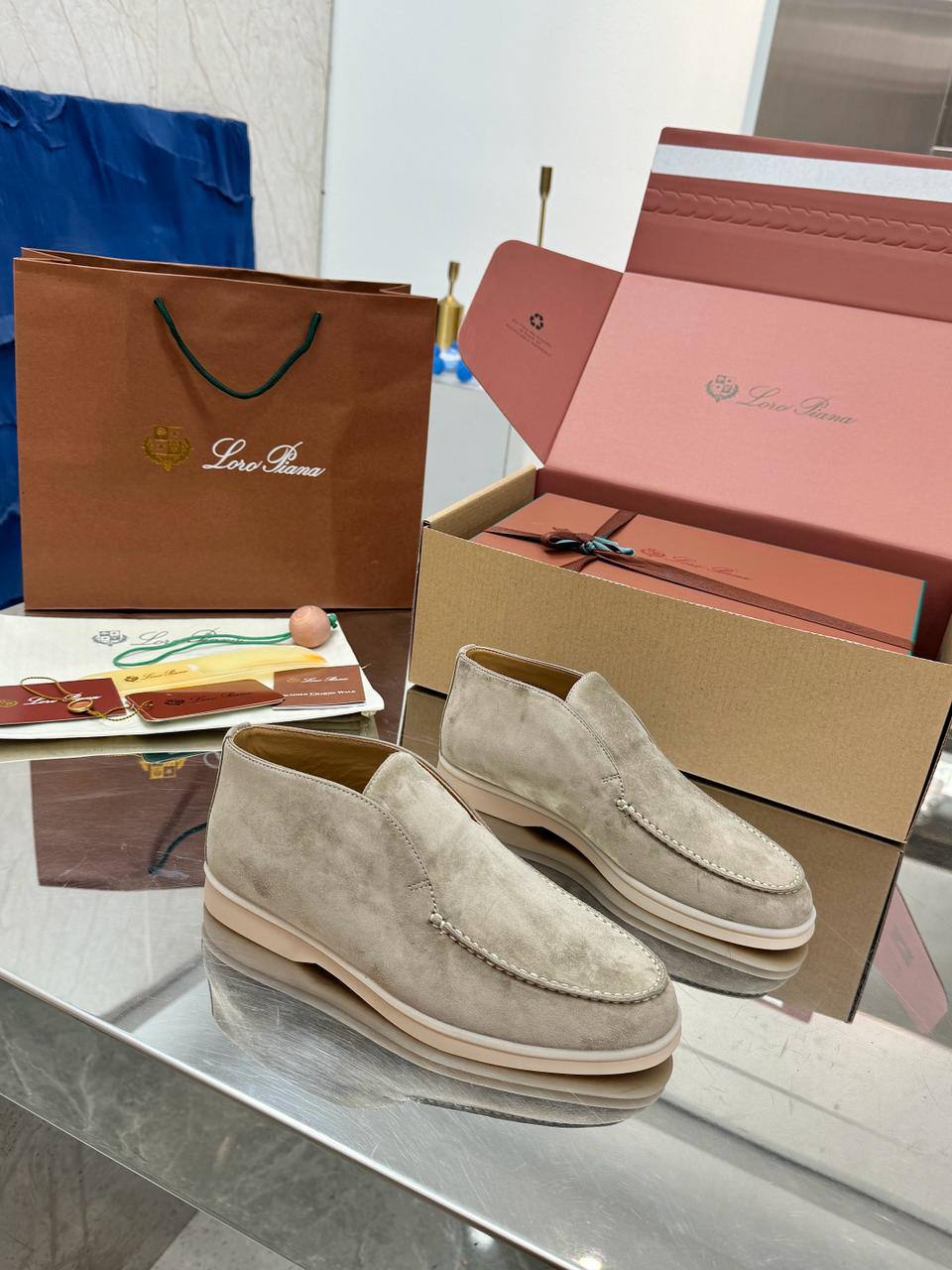 Женские замшевые лоферы Loro Piana premium - Light Grey