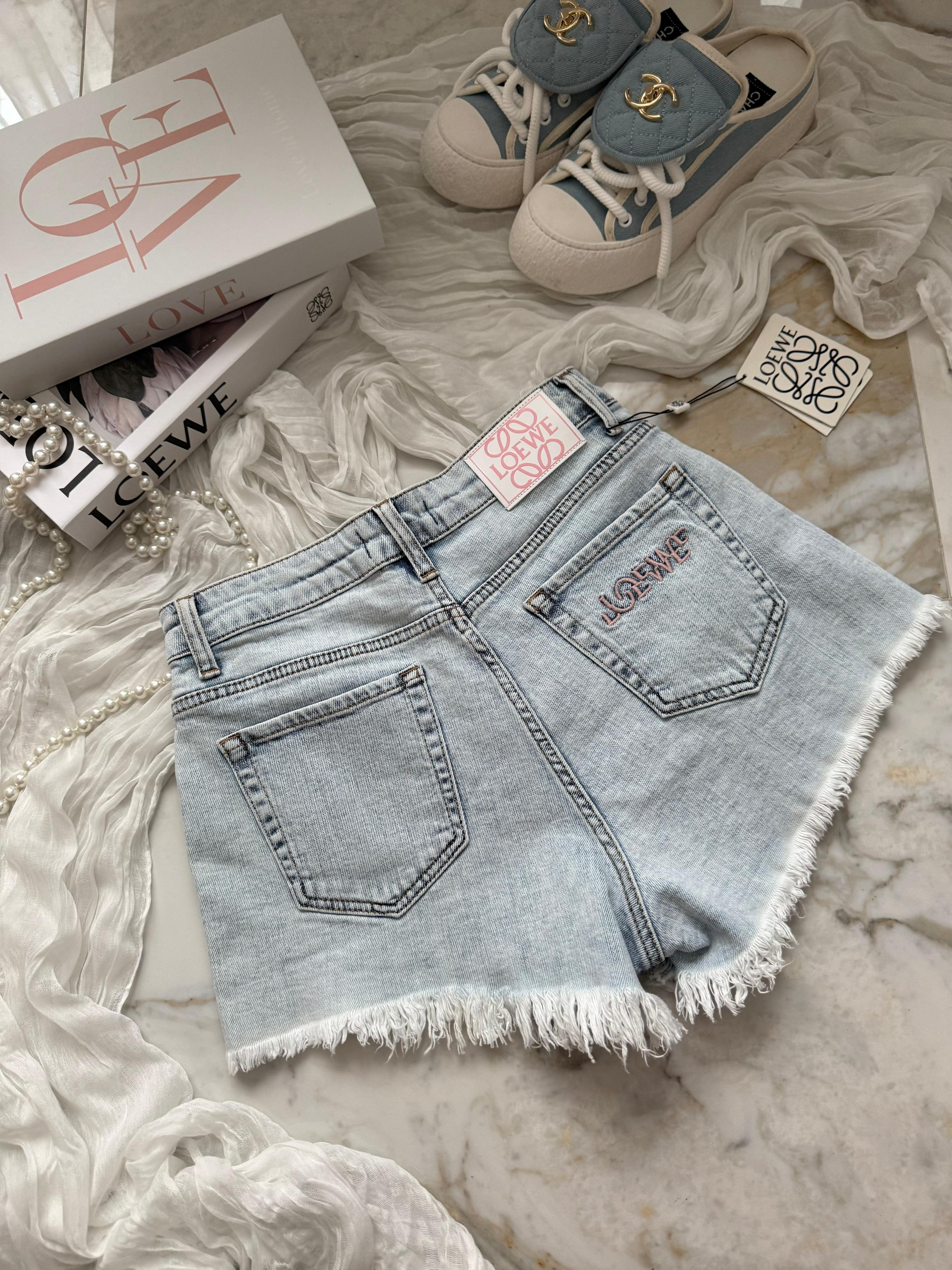 Женские джинсовые шорты Loewe синего цвета