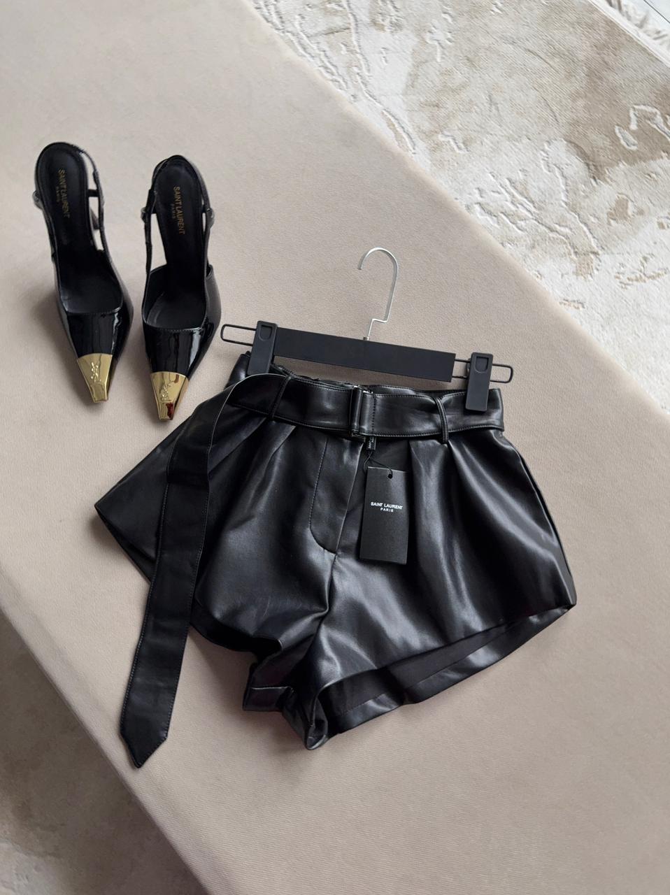 Женские кожаные шорты чёрного цвета Yves Saint Laurent