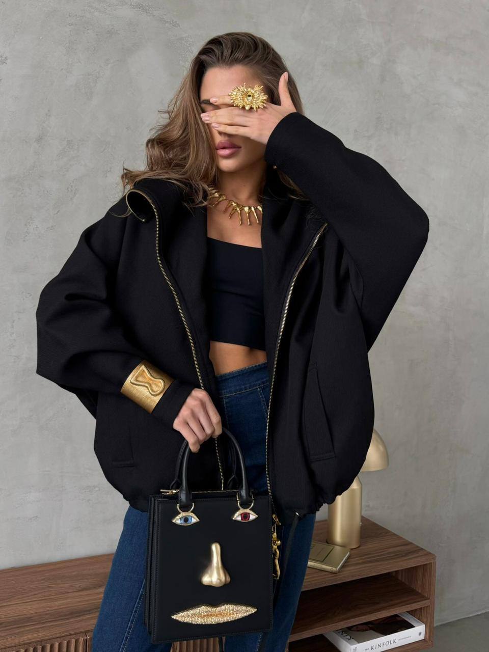 Женская куртка чёрного цвета Schiaparelli premium