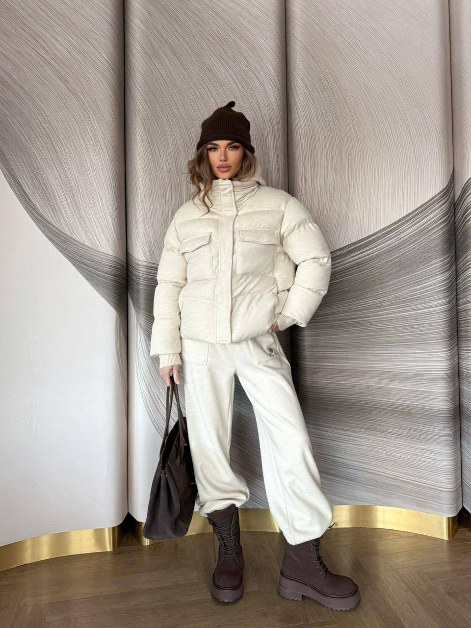 Женский костюм тройка на флисе Loro Piana premium - Beige