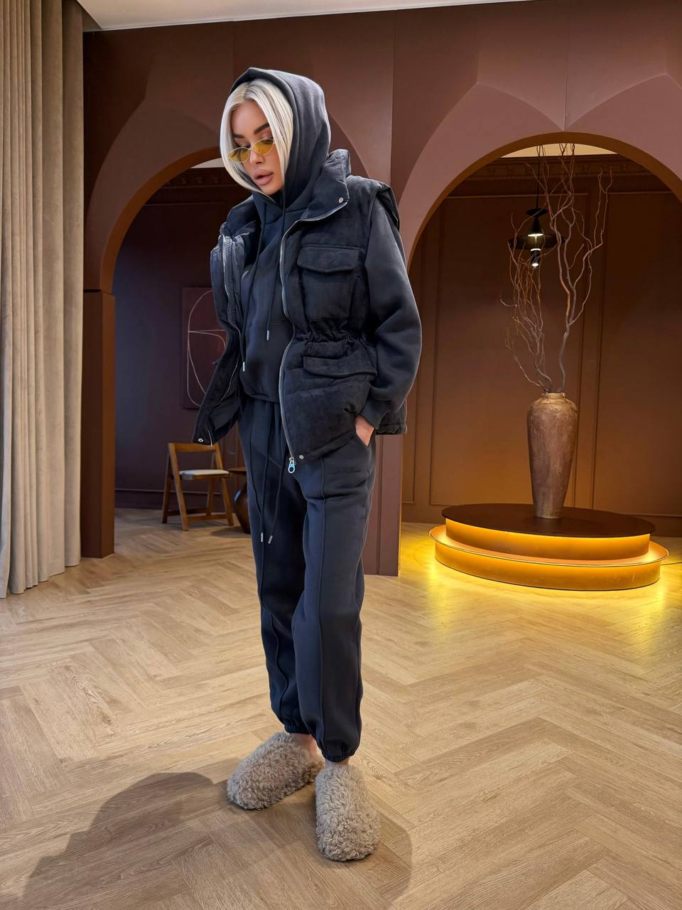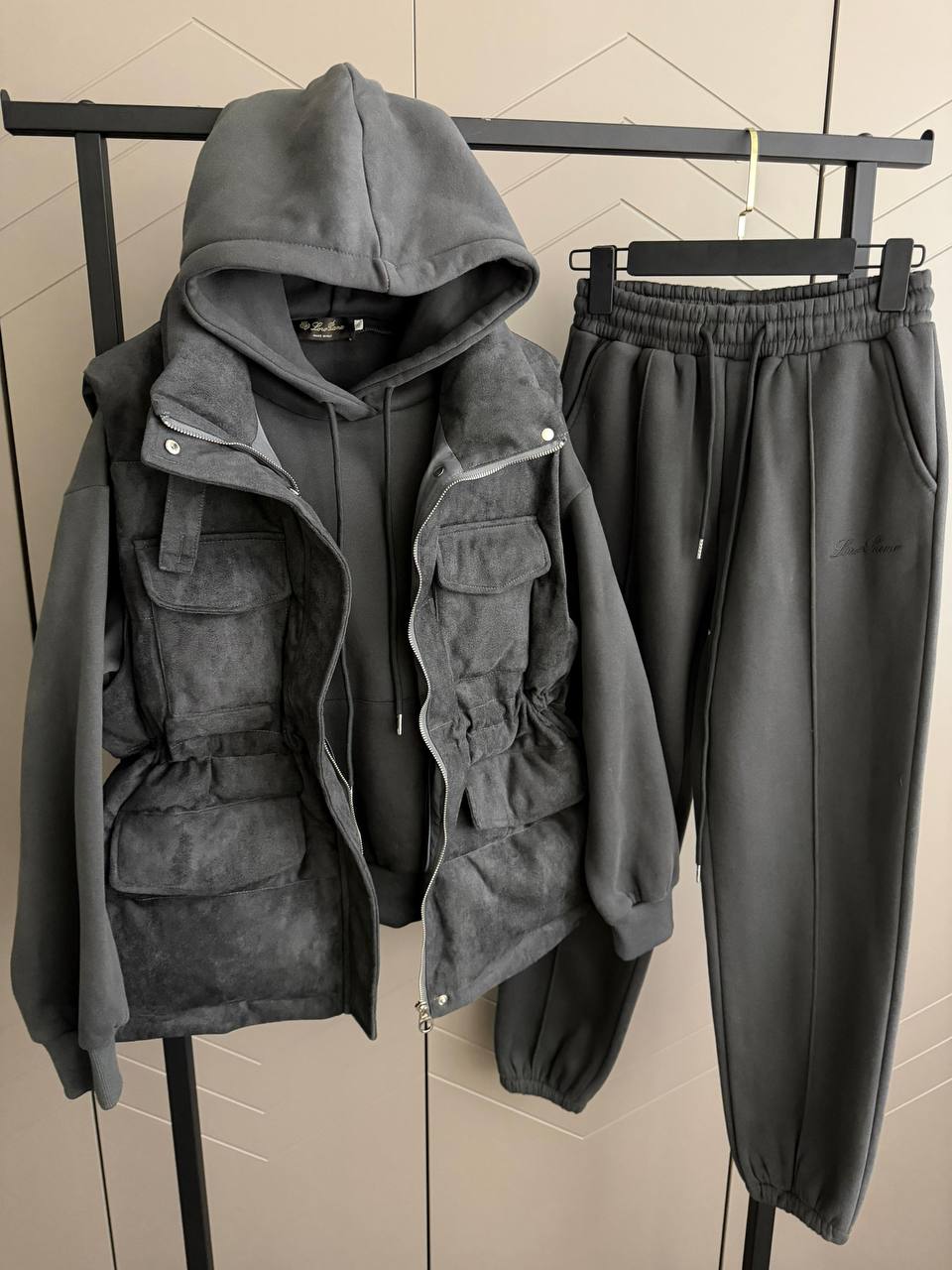 Женский костюм тройка на флисе Loro Piana premium - Grey
