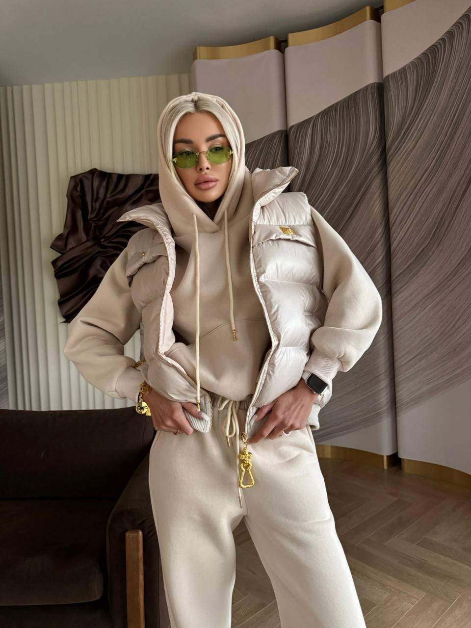 Женский костюм тройка на флисе Schiaparelli Premium - Beige
