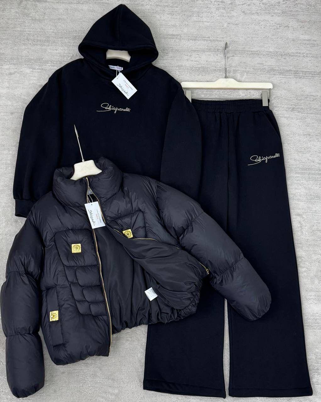 Женский костюм тройка на флисе Schiaparelli premium - Black