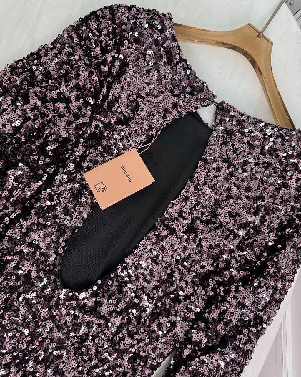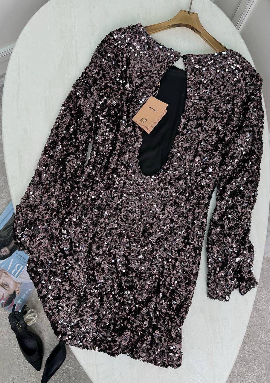 Женское платье в пайетках с открытой спинкой MIU MIU